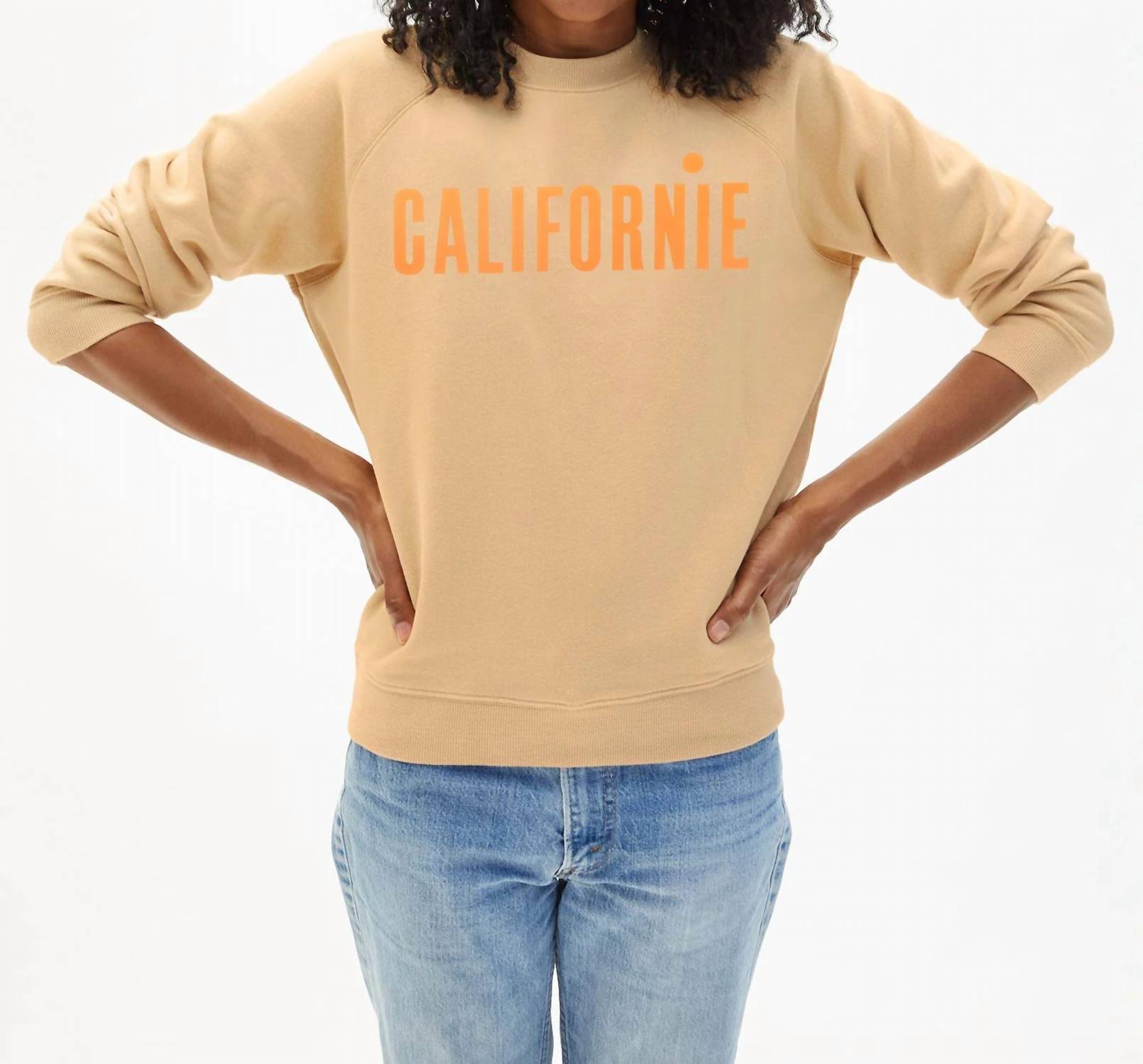 Experience the Californian vibe with the Clare V. Crew Neck Graphic Sweatshirt, designed in a captivating sand with neon orange Californie print. This sweatshirt features long sleeves and is crafted from 100% ultra-soft cotton fleece for a relaxed fit, making it perfect for layering in the cooler months. Designed with a crew neckline and ribbed trim, it delivers a classic fit, while its pull-on closure ensures ease of wear. Celebrate the iconic culture of California with this vibrant staple, perfect for laid-back travel or preppy Thanksgiving gatherings.