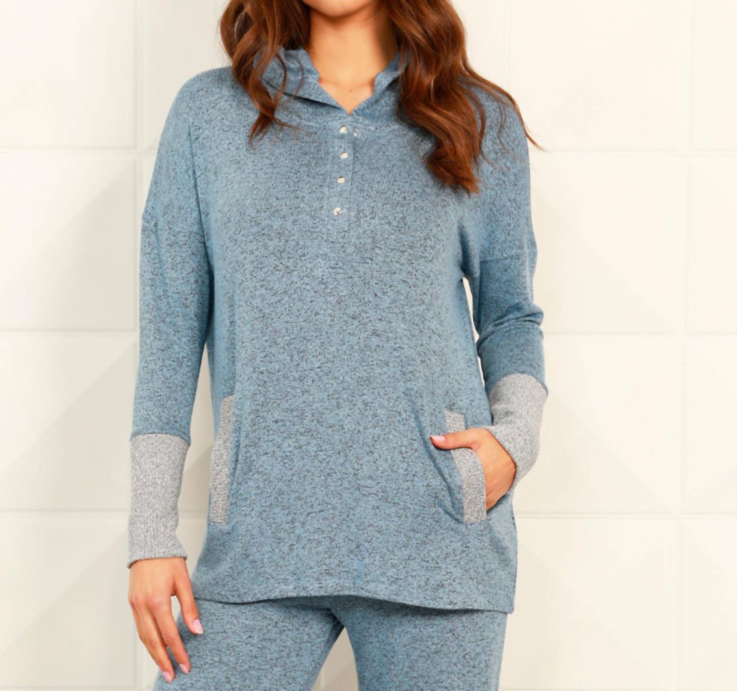 French Kyss - Button Ribbed Hoodie with Pocket