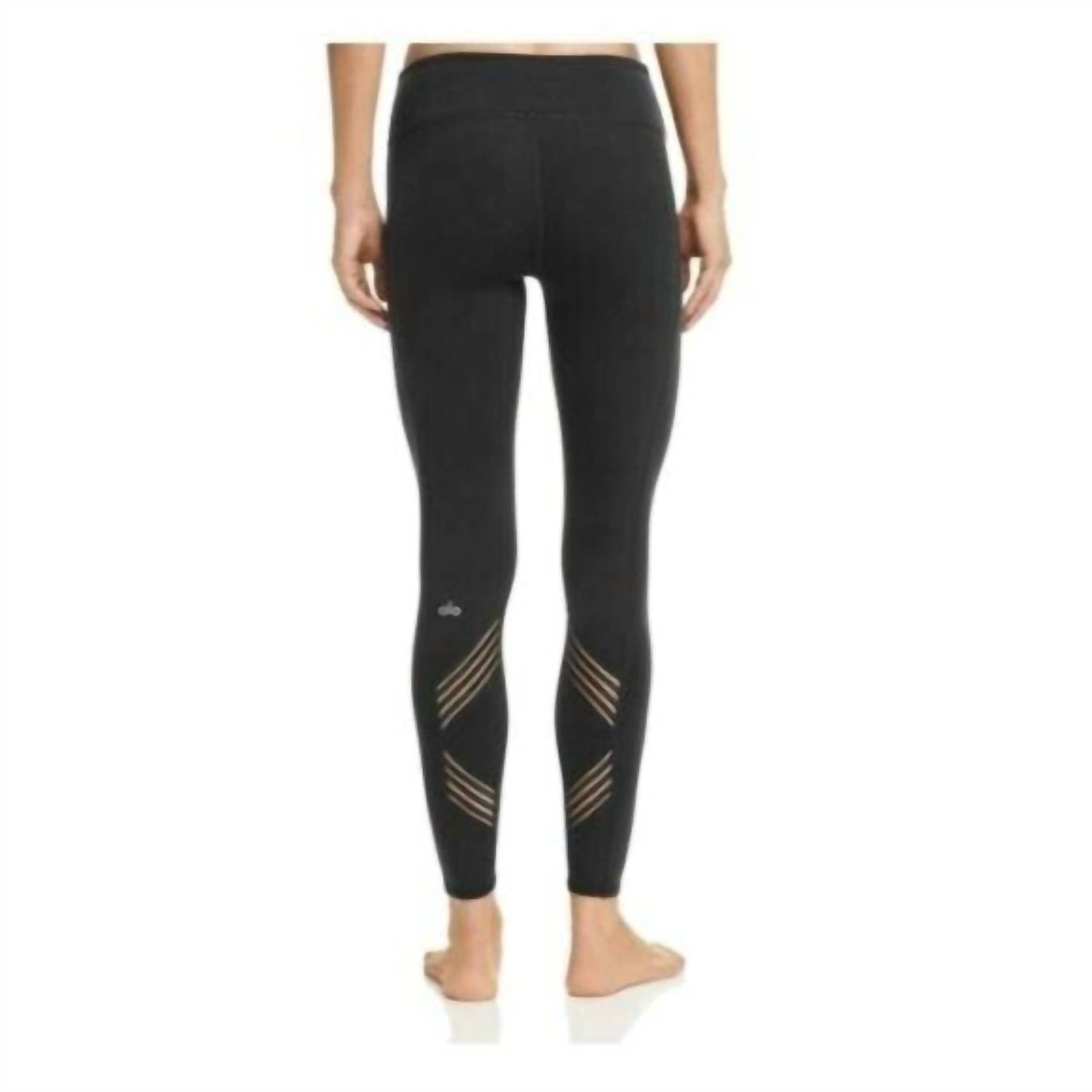 The legging you didn't know you needed and you won't want to take off. Experience unparalleled comfort and style with the ALO YOGA Mesh Inset Yoga Leggings. These black leggings boast a composition of 87% nylon and 13% spandex, ensuring a soft and stretchy fit designed with moisture-wicking antimicrobial technology. Featuring a mid-rise fit with an inseam of 28", front rise of 8.5", and back rise of 12", they offer contouring filament panels that lift, sculpt, and smooth. Enjoy the convenience of a hidden key pocket in the waistband and smooth flatlock seams for a chafe-free workout experience. Care instructions: Hand wash, dry flat.