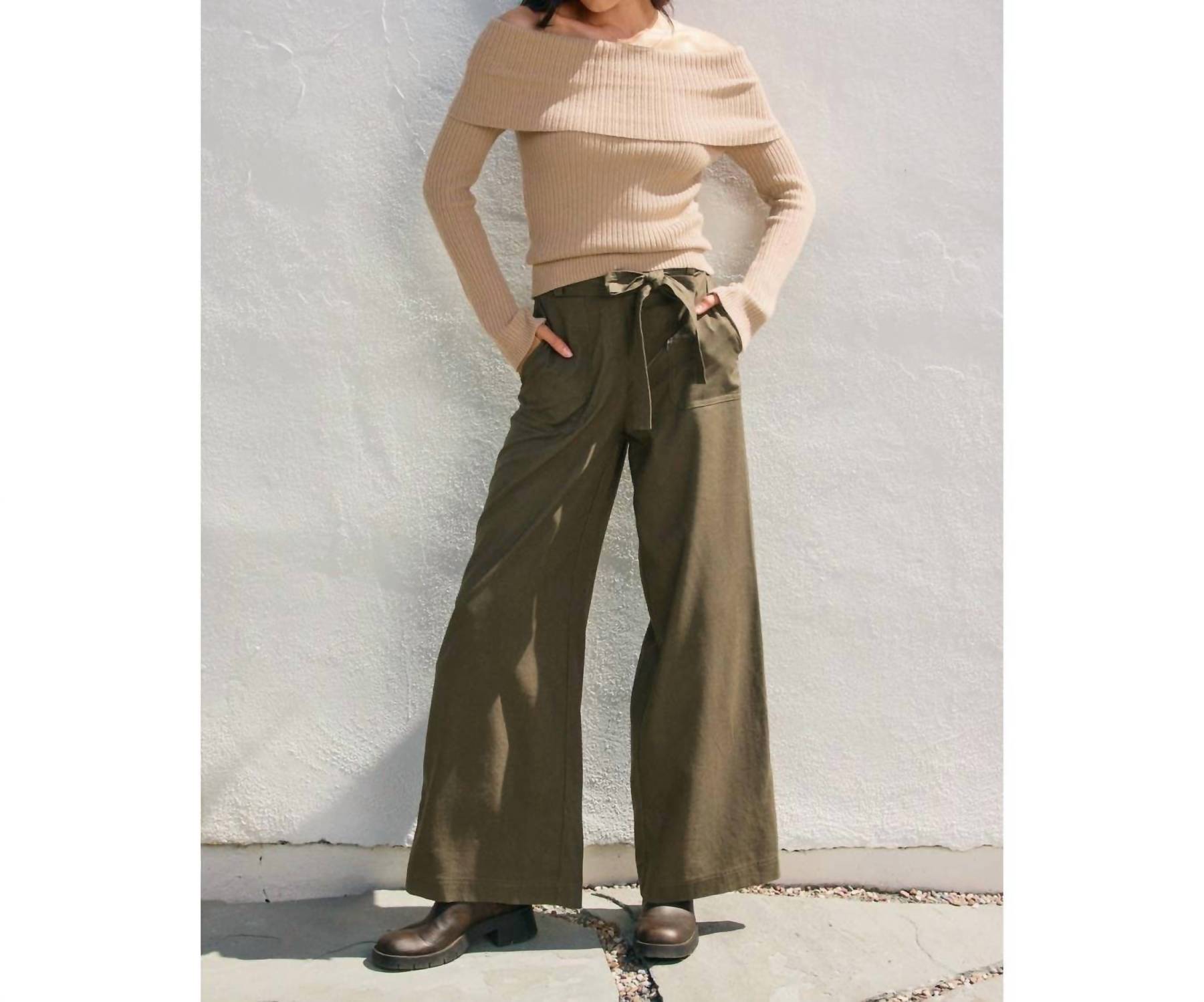 Elevate your wardrobe with the Wide Leg Belted Pants by DRESS FORUM, an ideal choice for a sophisticated yet comfortable look in Vineyard Green. Crafted from 55% Viscose and 45% Linen, these pants feature a flattering high-rise fit with a wide leg style. Designed with practicality in mind, they come with front fly zip and button closures, side rectangular patch pockets, and a self-fabric belt. Care: Machine wash and tumble dry.