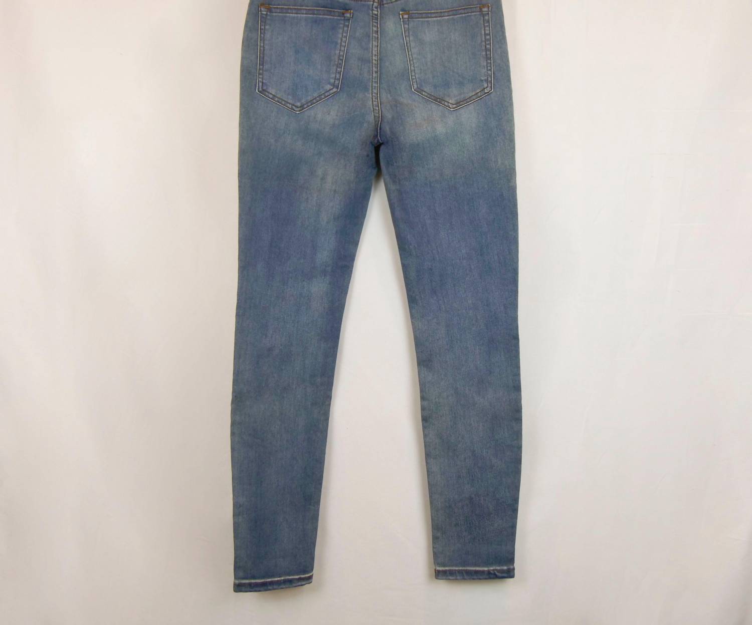High rise. Skinny Jeans. With fading and light whiskering. 53% Cotton, 23% Rayon, 22% Polyester, 2% Spandex.