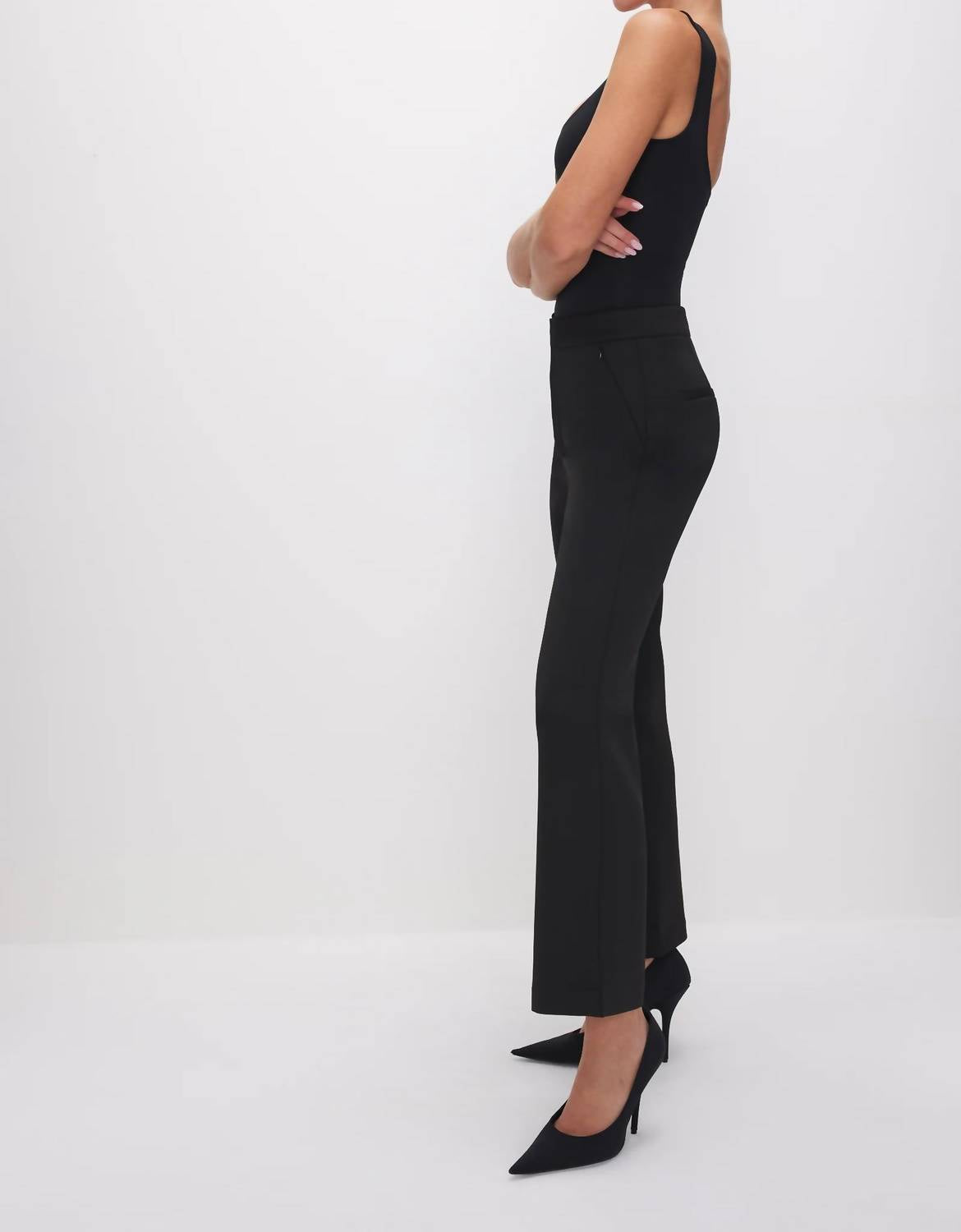 Elevate your wardrobe with the Scuba Cropped Straight Trousers by GOOD AMERICAN, crafted in a classic black hue. These trousers offer a high-rise fit and straight legs, providing both chic style and all-day comfort. Made from 92% polyester and 8% elastane, they feature a front zip-fly closure and side pockets for practicality. With a 28" inseam, they're perfect for a sleek, cropped look. Care: Dry clean or hand wash.