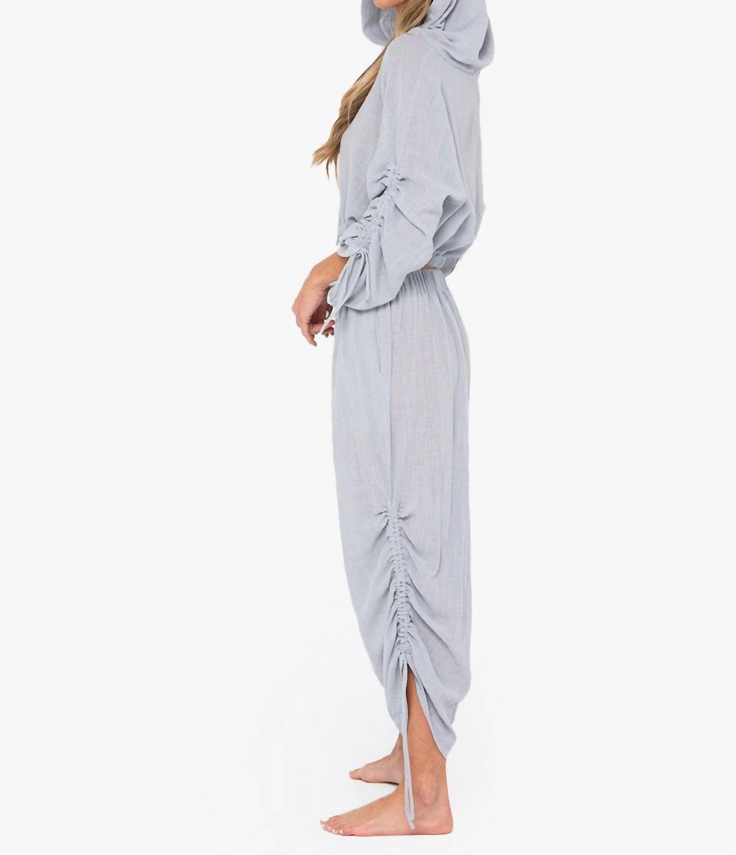 Upgrade your wardrobe with these cropped pants, designed to merge sophistication and wearability. The tailored fit ensures ultimate comfort during long days or nights out. Relax in style with the Grayson Lounger Pants by JBQ, perfect for your next resort getaway. These Dusty Blue pants offer a relaxed fit with a high-rise elastic waistband and feature a tapered leg with an elastic cuff at the ankle. Crafted from lightweight, 100% cotton material, they ensure comfort while adding a touch of sophistication with adjustable drawstrings and practical pockets. Care is made simple: machine wash delicately with like colors and line dry to maintain their quality.