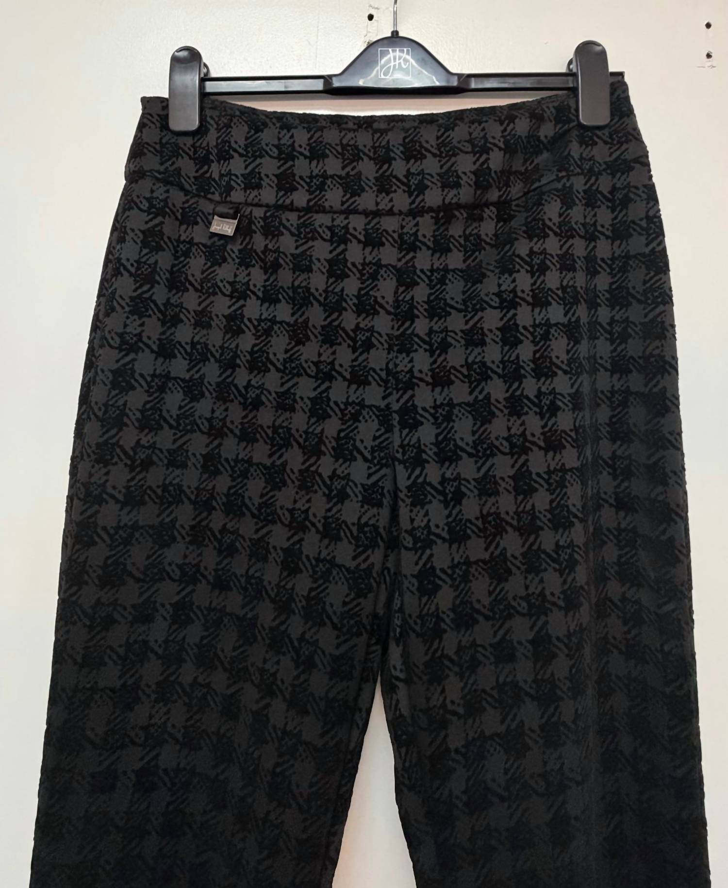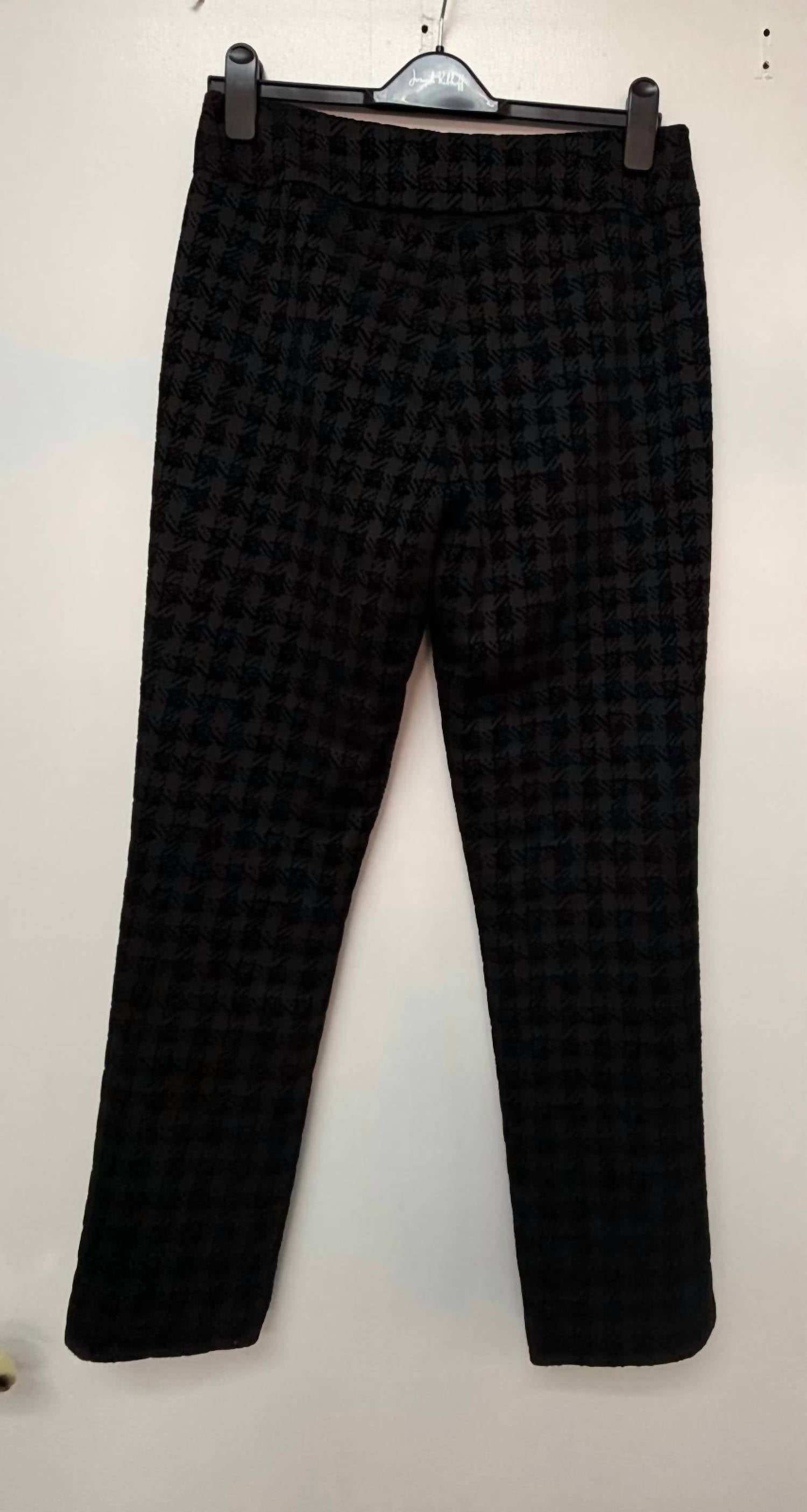 The perfect skinny pant for those stylish boots this season! Step into vintage elegance with the Women's Houndstooth Pull On Pants by Joseph Ribkoff. These black patterned pants are crafted from a comfortable cotton blend and feature a flattering slim fit with a skinny leg silhouette. Designed without pockets for a sleek look, they offer the ease of a pull-on closure. Ideal for spring and versatile enough for a Thanksgiving holiday party, these pants are a chic addition to your wardrobe.