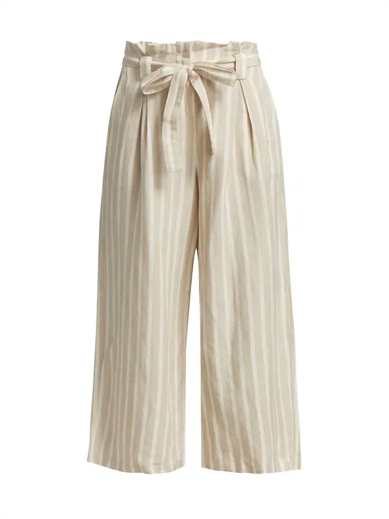 Stay on-trend and showcase your impeccable taste with these adaptable and stylish cropped pants. The perfect length to wear with your favorite mules. You'll love the fit!These striped wide-leg pants from L'Agence feature a paperbag waist with a self-tie belt and a zip fly. Made from a linen-rayon blend, they include on-seam pockets and are dry clean only. The pants have a cropped inseam of about 23.5 inches. True to size. The model is 5'10" and wearing a US size 4. Color: Bisque Ivory. Imported.