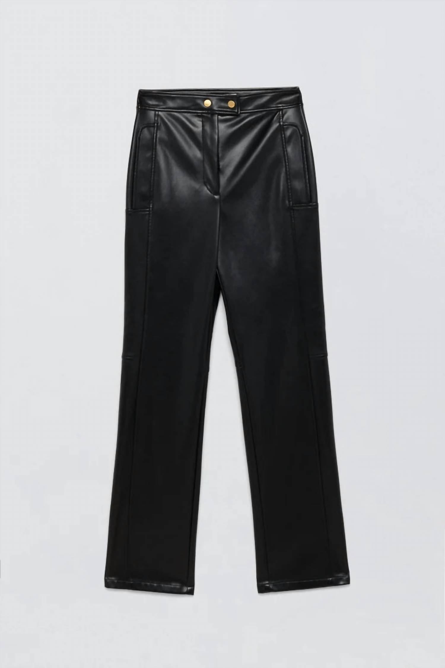 Elevate your wardrobe with the SIMKHAI Dahlia Straight Leg Faux Leather Pant in an elegant black hue. These women's trousers feature a mid-rise waist and a relaxed, straight leg fit, crafted from a supple blend of 50% Polyurethane and 50% Polyester. Enjoy the comfort of its lined interior with 60% Viscose and 40% Rayon. Featuring a convenient zip closure, these imported pants are designed for easy styling and care, simply dry clean them to maintain their sophisticated look.