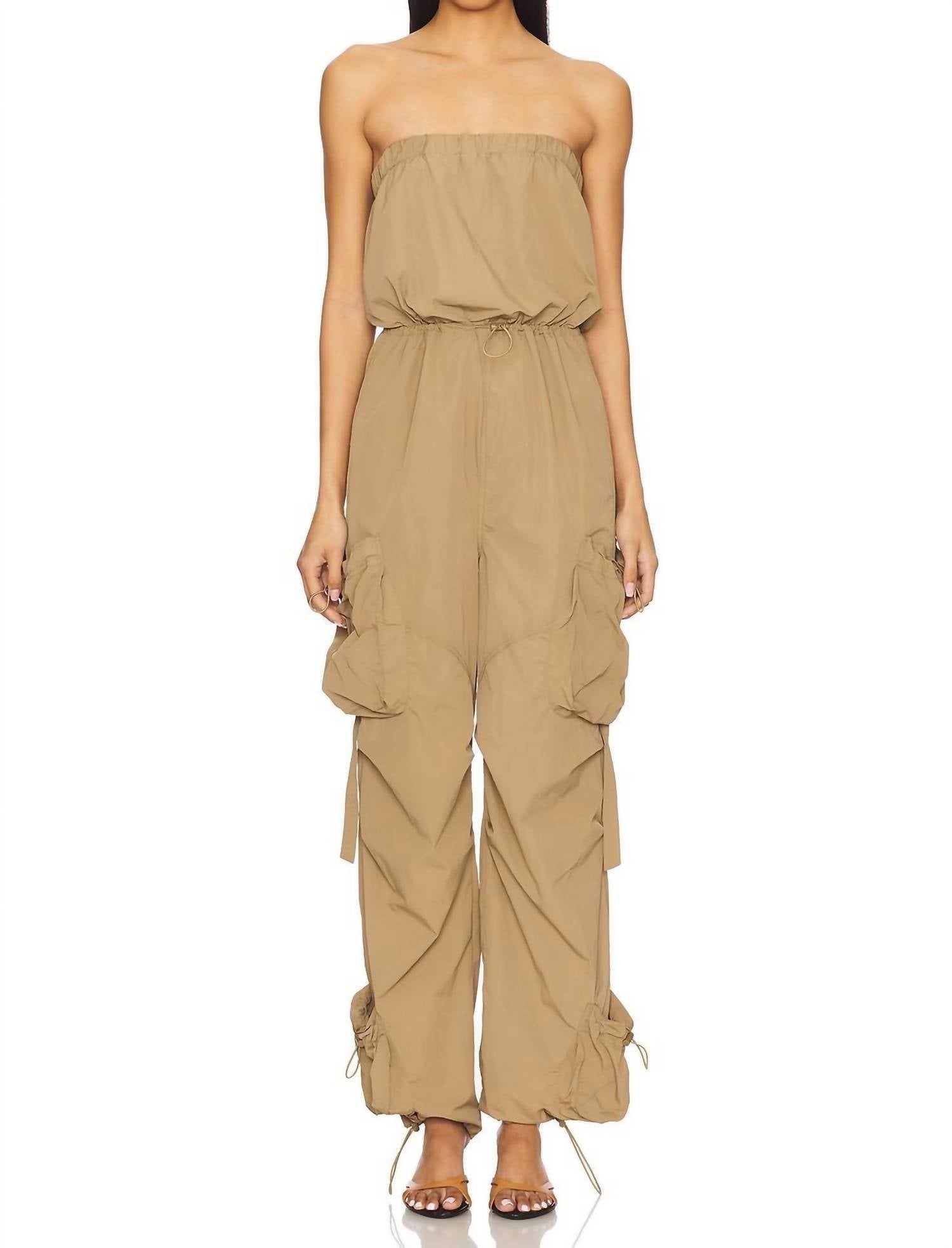 Throw it on and go! Introducing the Kylo Jumpsuit by Steve Madden, an effortlessly stylish piece in oak buff for the modern woman. Made from 100% nylon, this jumpsuit features a convenient pull-on styling with an elastic neckline and drawstring waistline. It boasts midweight ripstop fabric and practical cargo pockets on the sides with additional adjustable drawstrings and a single back patch pocket. Crafted in China and easy to care for with machine wash cold instructions, this jumpsuit measures approximately 135 cm from neckline to hem, with a 51 cm width at the knee that narrows to 41 cm at the leg opening.