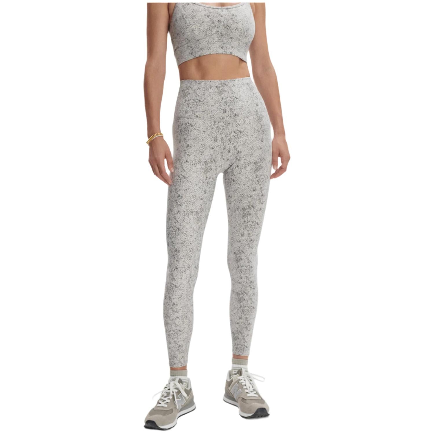 The Move Super High Leggings by VARLEY are designed for ultimate comfort and performance, making them ideal for Pilates and yoga. Featuring a super-high, silhouette-smoothing waist with a concealed pocket, these leggings offer both practicality and style. They are crafted from 75% recycled polyester and 25% elastane for excellent moisture management and breathability. In an ivory textured snake pattern, these pull-on leggings have a skinny leg style and require a cool machine wash with like colors, avoiding bleach and drying flat.