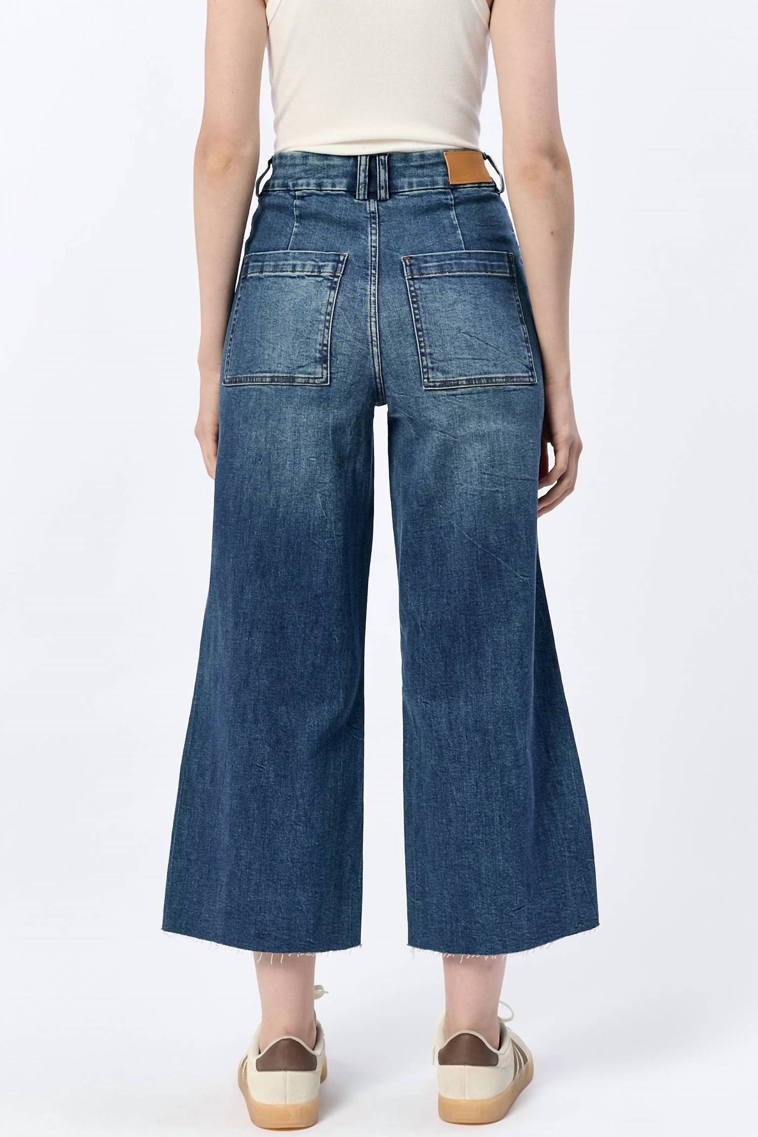 Introducing the Audrey Wide Leg Jeans by DEAR JOHN DENIM, a stylish and comfortable choice in Meeru dark wash. These high-rise, relaxed fit jeans feature a trendy raw cut hem, perfect for daytime casual or evening chic looks. Made from a cotton blend of 98% cotton and 2% spandex, they provide just the right amount of stretch for all-day comfort. Closure: Button closure. Care: Machine wash, tumble dry.