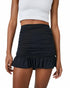 Elevate your workout wardrobe with the Love High Skort by Free People, designed for stylish movement in a chic, solid black. This high-rise skort is crafted from ultra-soft 89% Polyester, 11% Elastane with a slim fit, featuring a breathable four-way stretch, built-in shorts, gathered sides, and a playful ruffled hemline. Closure: Pull on. Care: Machine wash. Perfect for summer athleisure and fitness activities.
