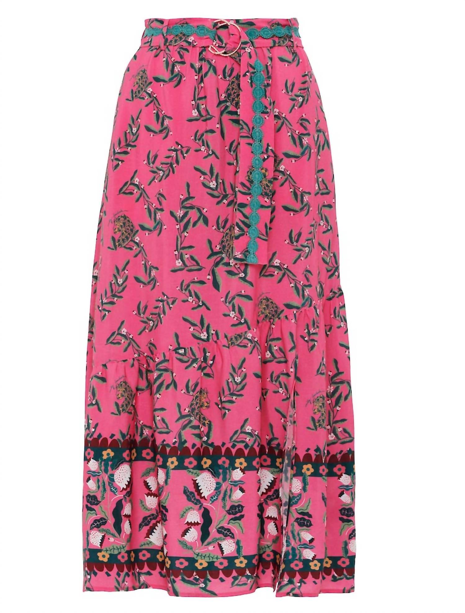 Flowy, comortable and stylish. This maxi skirt is a fan favorite. This CAROLINA Midi skirt from Emily Lovelock in this stunning pink and green floral print, is the perfect way to brighten your everyday style. Emily Lovelock prints are hot and fabricated in a flowy viscose crepe. We love the details and Flat front waistband with elastic back for an easy fit. Side zip and front slit to show some leg. True To Size