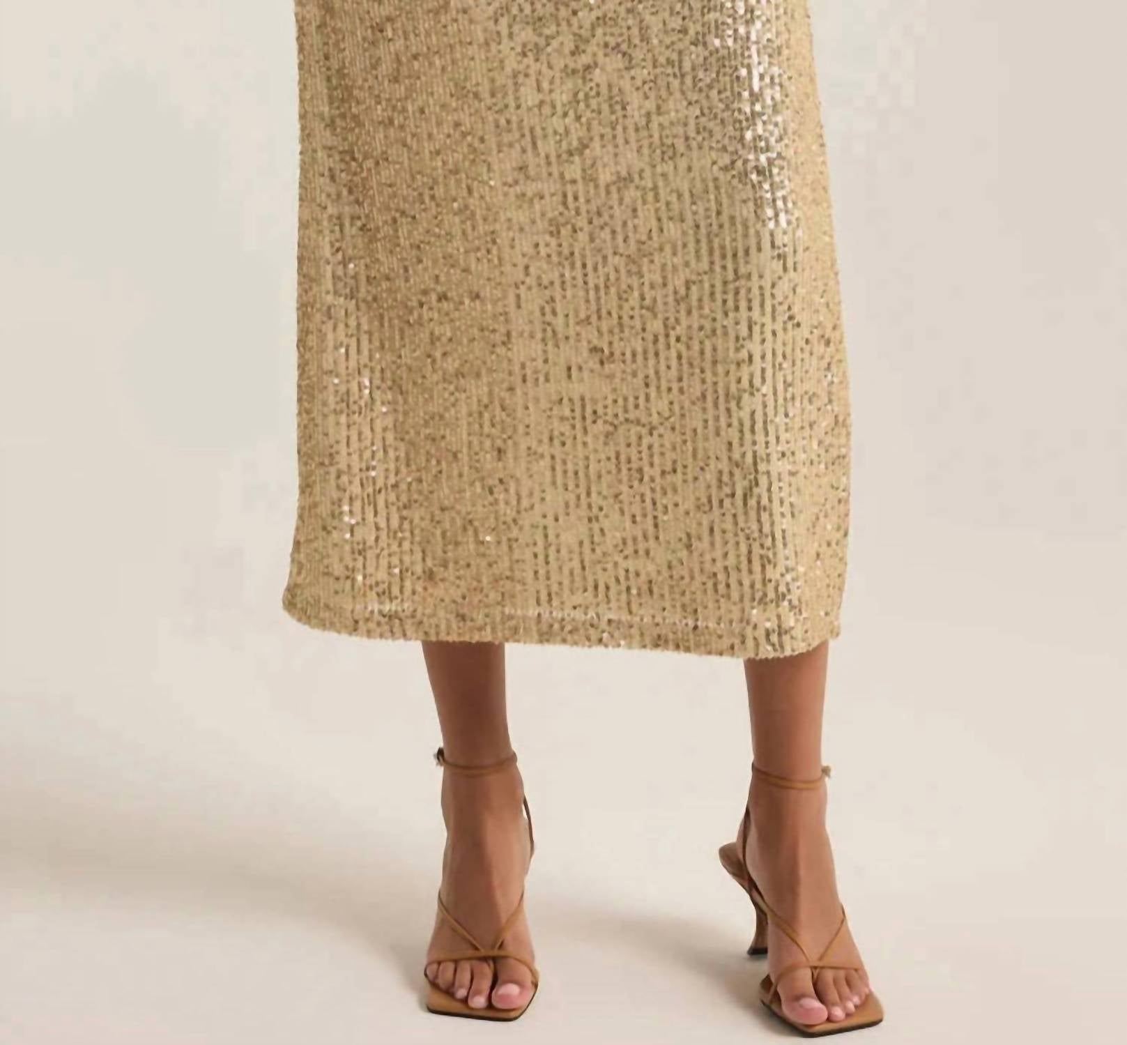 Tuck in your favorite tee for a more casual yet feminine look. Regular fit. Mid rise with midi length. Fully lined for comfort. Elastic waistband. Stretch Sequin: 92% Polyester, 8% Spandex. Machine wash cold, delicate cycle, hang to dry.