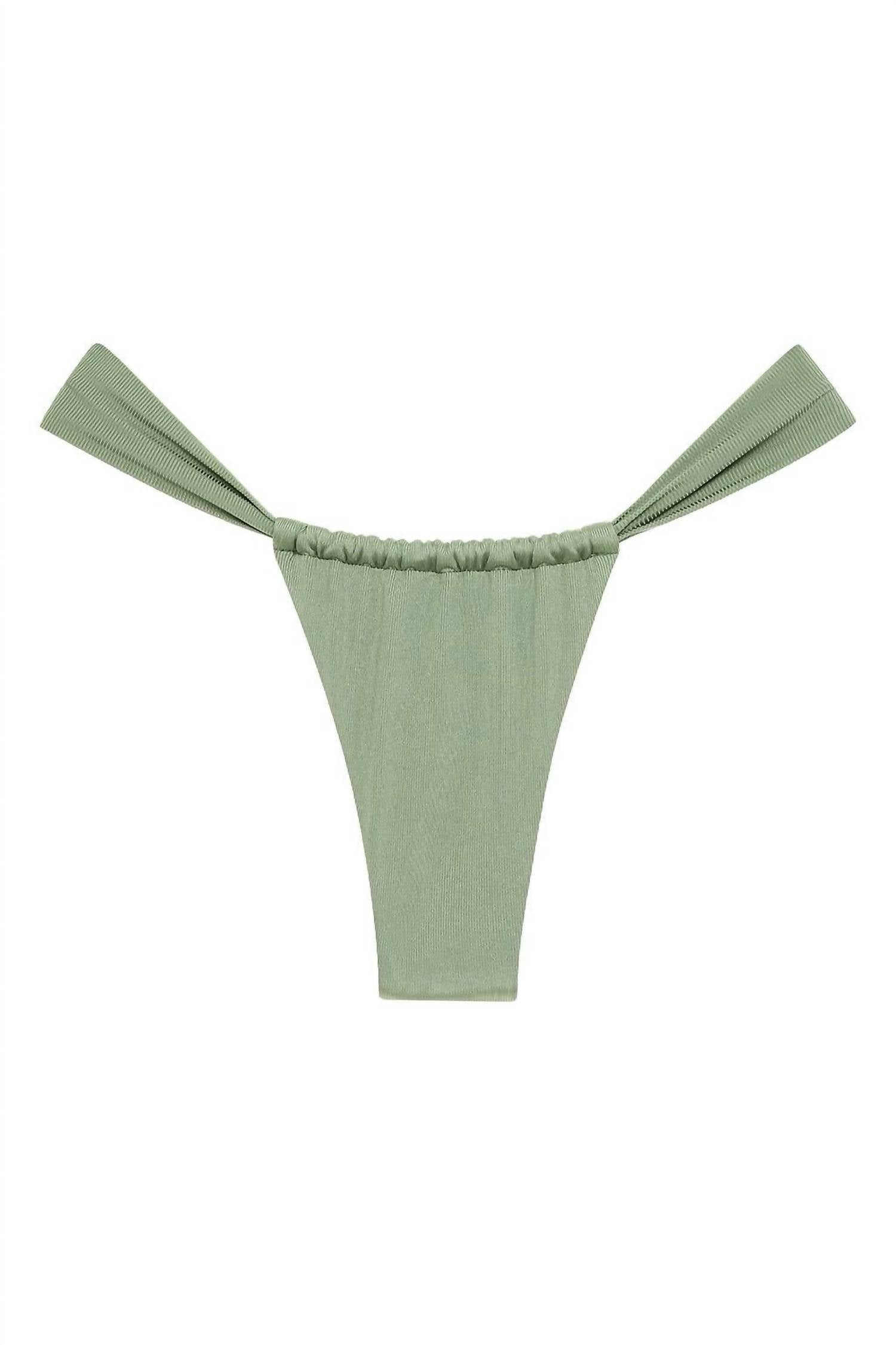 This cute and flattering swimsuit is perfect for making a splash at the pool, lounging on sun-kissed beaches, and staying stylish throughout the upcoming summer season. Introducing the Rib Sandra Bikini Bottom by Montce, a perfect summer staple in sage green rib for a chic minimalist look. Designed with minimal coverage, this low-rise bikini features a high cut style to elongate your legs, ideal for achieving minimal tan lines. Made from a luxurious blend of 80% nylon and 20% spandex, the fabric is both OEKO-TEX certified and includes a micro rib option with 90% recycled nylon and 10% spandex, GRS certified for eco-conscious fashion. Care instructions recommend hand washing and line drying to maintain its shape and sheen.