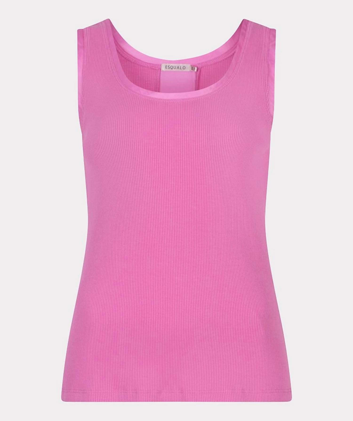Elevate your summer wardrobe with the Women's Rib Satin Finish Singlet Tank Top by ESQUALO in a chic pink hue. This sleeveless tank features satin-look trim around the neck, arms, and a strip at the back, offering a subtle touch of elegance. Made from a breathable blend of 50% Lyocel and 50% Cotton, it is designed for a boho chic vacation style. Closure: Pull on. Care instructions are not available. The model is 1.73m and wears size S, perfectly complementing the scoopneck design.