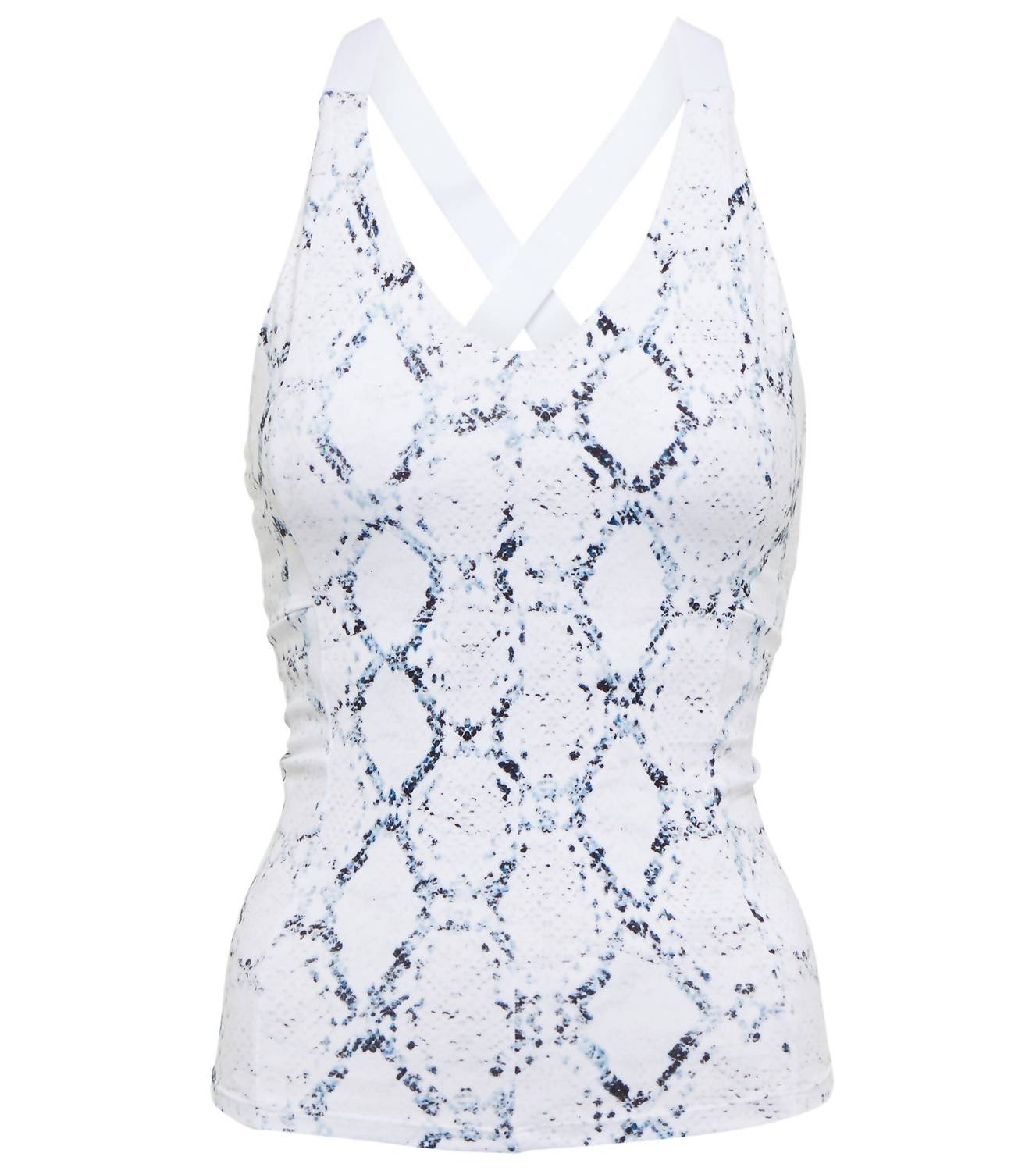 Fit, fabric and functionality. This tank top checks all the boxes. Made from stretchy jersey and has a v-neck. Removable cup padding. Fitted. Mid-weight material. Stretchy fabric. Falls to the hip. Material: 88% Polyester, 12% Elastane. Lining: 87% Nylon, Partially Lined, 13% Elastane. Machine wash.