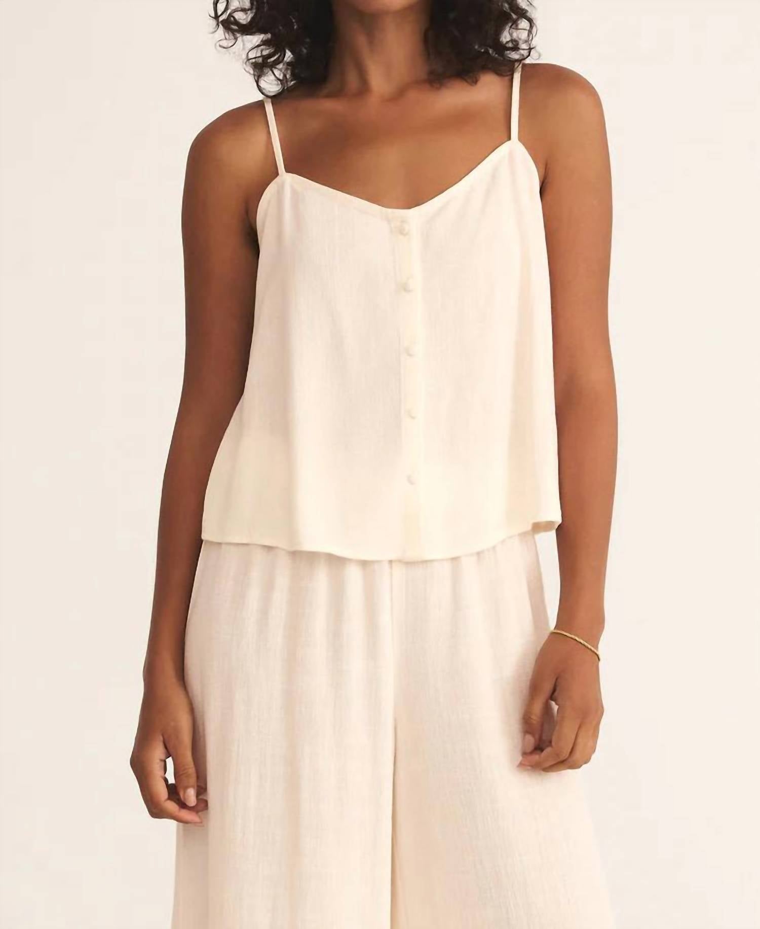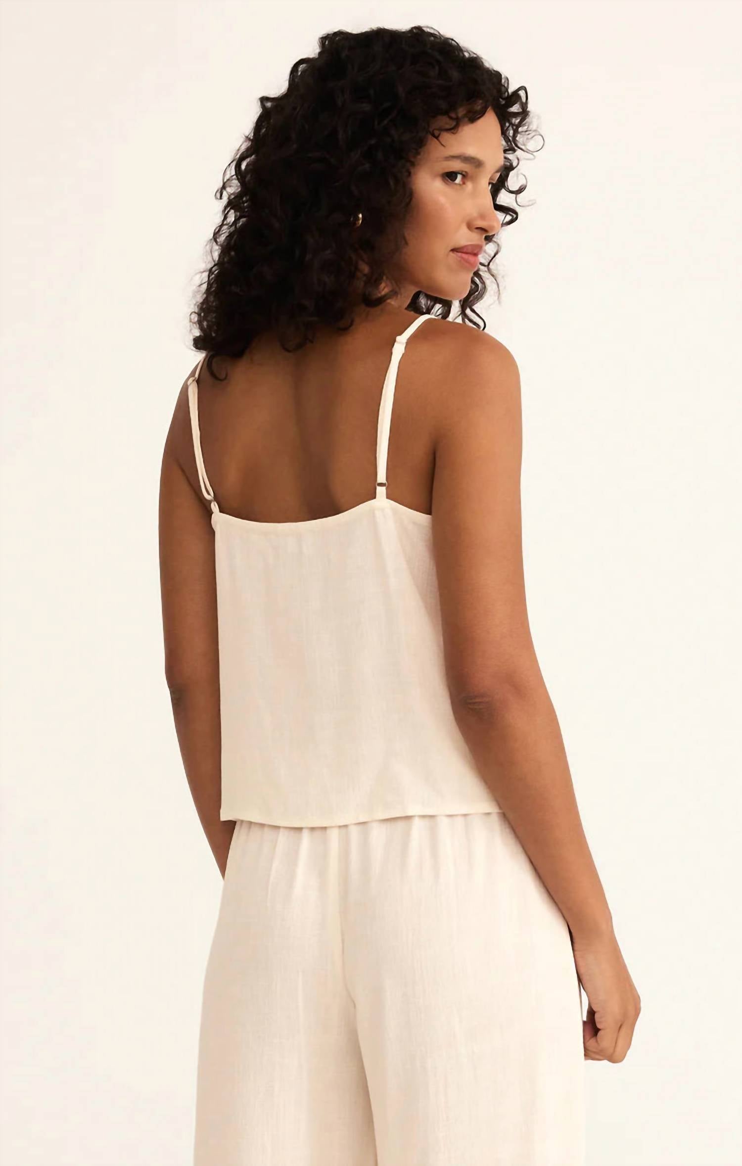 The perfect tank top for those warmer weather seasons. Embrace effortless style with the Savoy Tank in Sea Salt by Z Supply, a must-have for any relaxed wardrobe. This sleeveless tank features adjustable spaghetti straps and a button front, offering a chic and comfortable fit. Made from a luxurious blend of 86% Rayon and 14% Linen, it is crafted under fair working conditions in a company-owned Chinese factory. Ideal for both sunny days and casual nights, this piece is a perfect addition to your spring wardrobe.