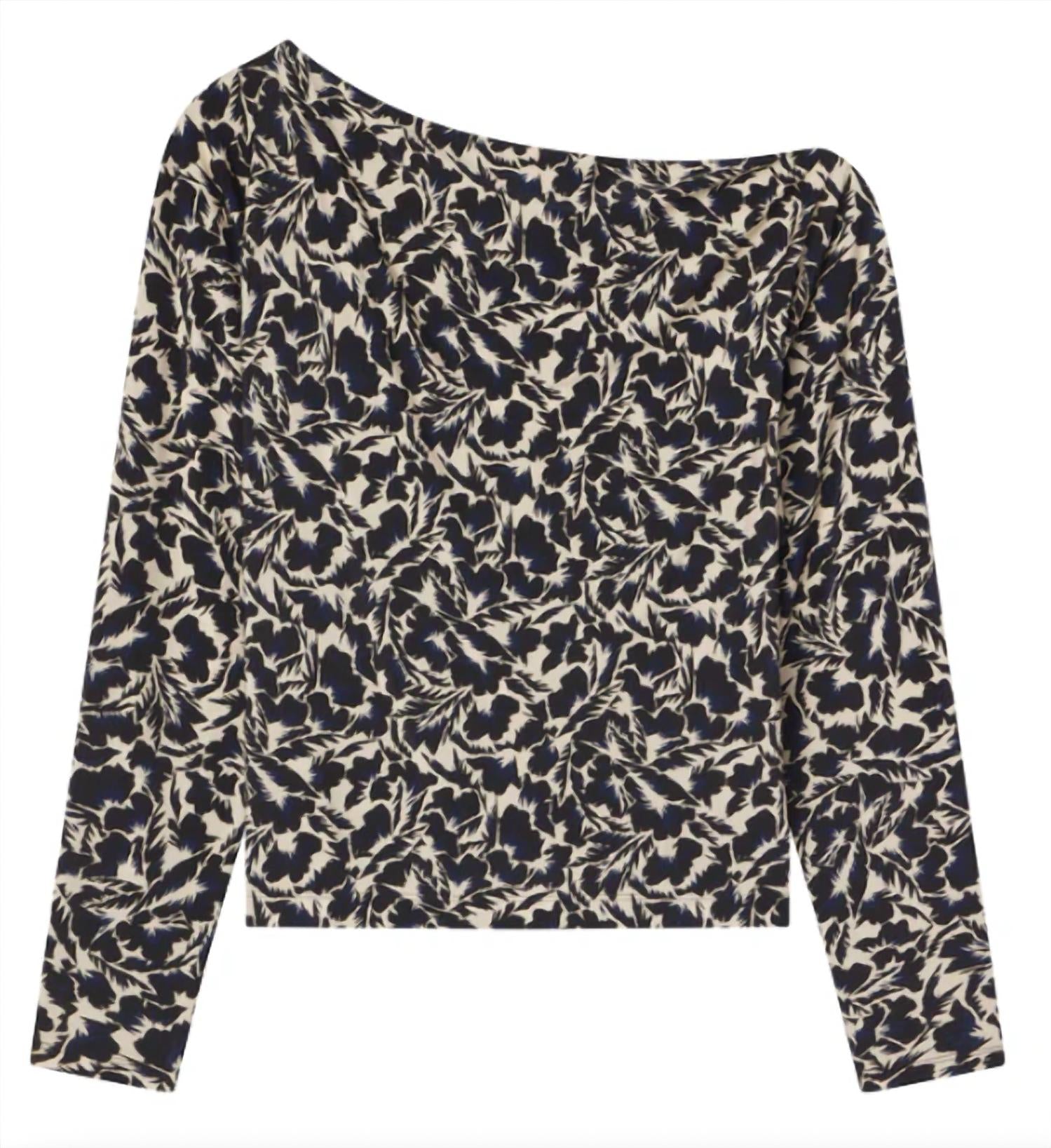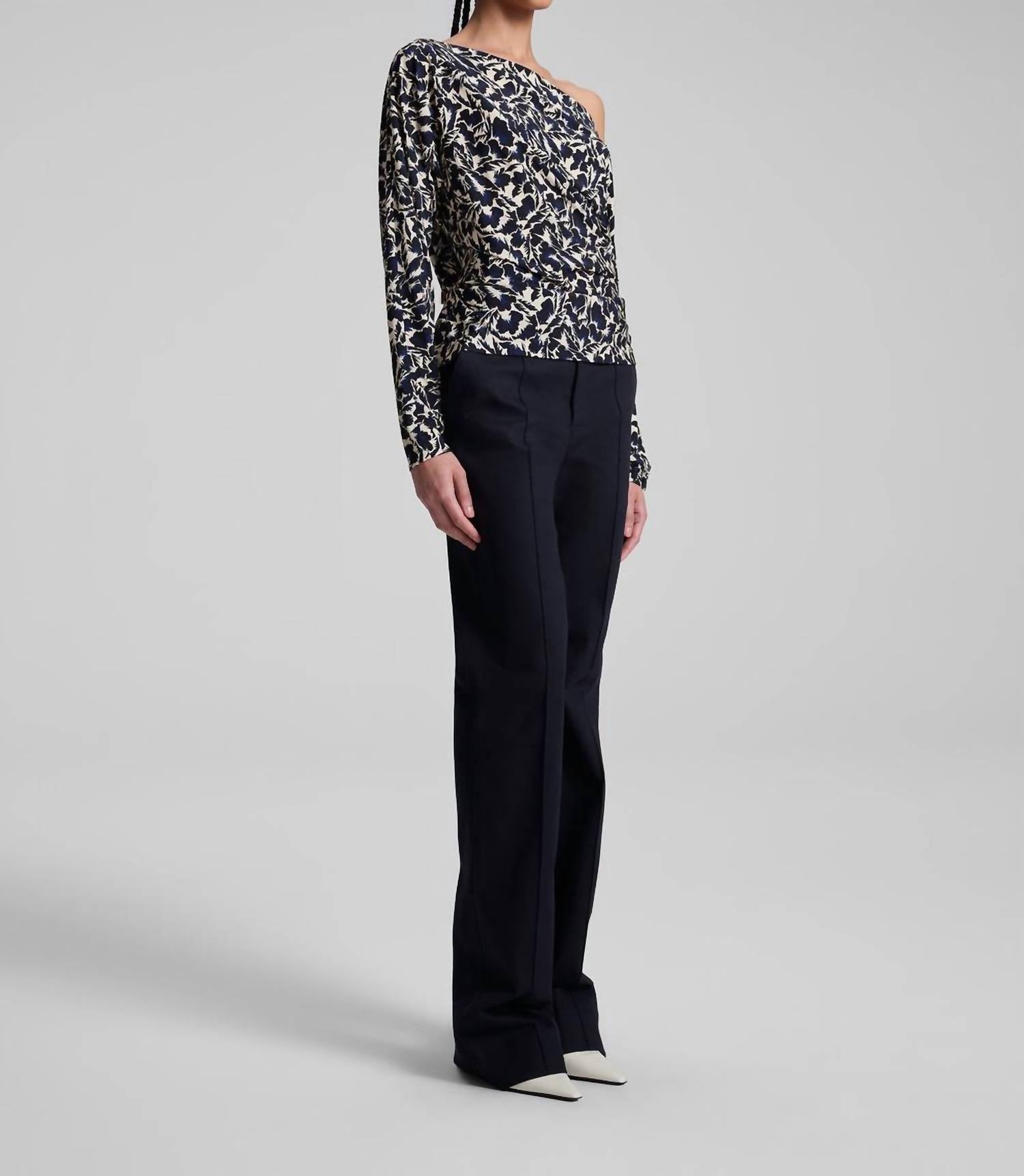 A versatile blouse that works from desk to dinner! The Tyler Top by A.L.C. is a chic blouse option, showcasing a striking navy and cream floral pattern. This long-sleeve piece is crafted from a luxurious viscose blend, offering both comfort and elegance. Designed with an off-the-shoulder neckline, it seamlessly slips on for easy wear. Care: Dry clean only.