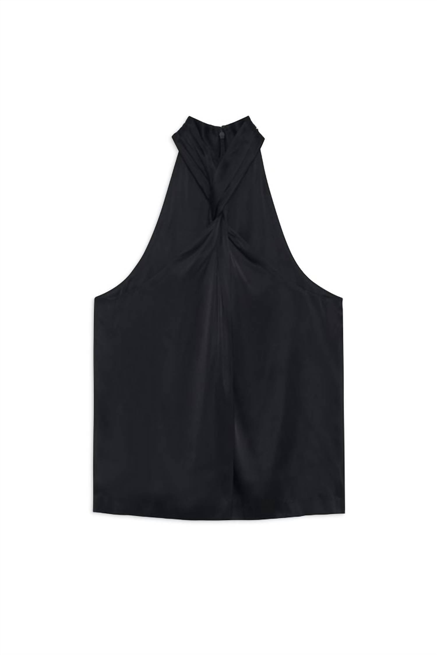 The perfect tank top for those warmer weather seasons. Meet the Becca Tank Top by ANINE BING, a sophisticated addition to your spring wardrobe in timeless black. This sleeveless, full-length tank features a halter neckline and is crafted from a luxurious silk blend, lending a heavyweight textured crepe finish. It boasts a convenient pull-on closure, embodying the essence of quiet luxury essential for vacation styling. Care is simple with dry cleaning instructions, and it can be tumble dried for added convenience.