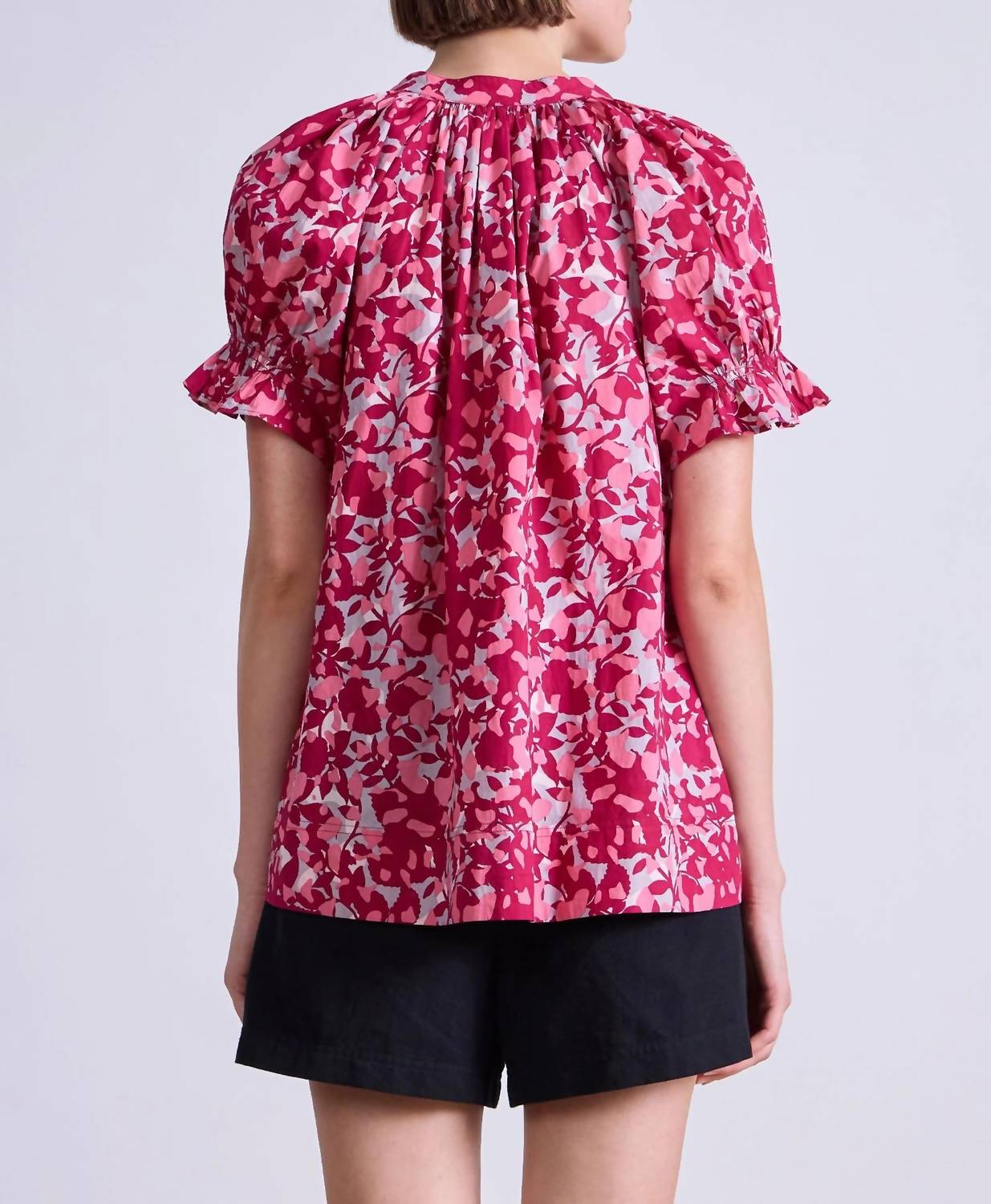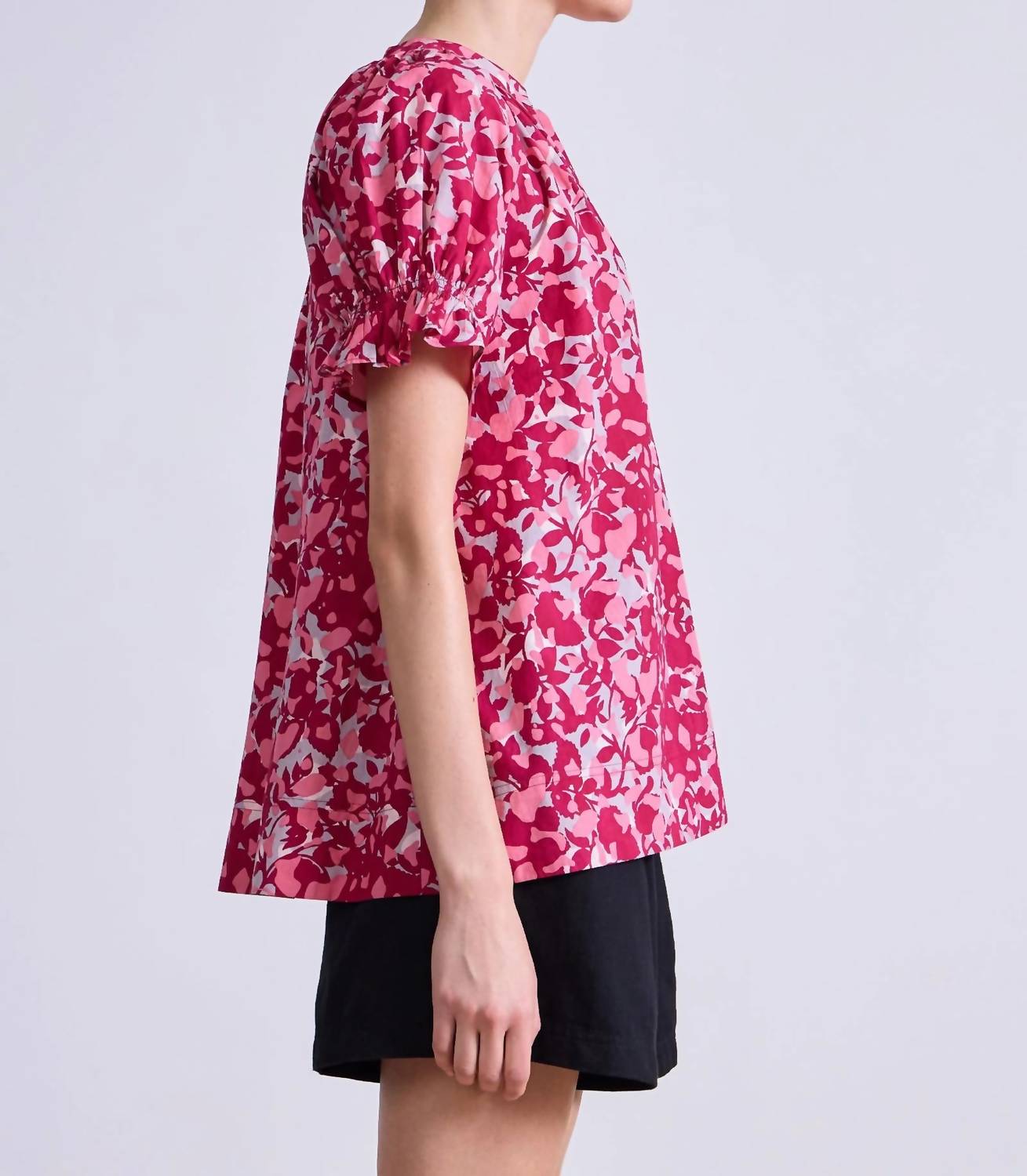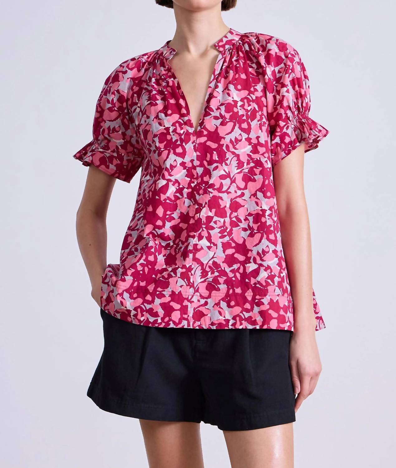 A versatile blouse that works from desk to dinner! The Lo Capo Top by APIECE APART is a stylish addition for any maximalist wardrobe, perfect for a Thanksgiving dinner party. This short sleeve blouse is crafted from 100% organic cotton and comes in a captivating Layered Pebbeled Rosa pattern. It's designed with a classic collar and features a convenient pull-on closure. For care, simply hand wash and lay flat to dry.