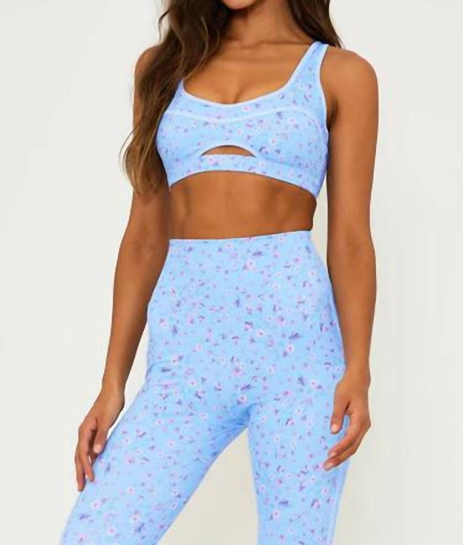 The perfect crop top for those warmer weather days. Introducing the Moxie Top by Beach Riot, a chic addition to your athleisure wardrobe in a beautiful Iris Petal floral pattern. This sleeveless crop top is crafted with a blend of 75% Polyester and 25% Spandex for both the self and lining, ensuring a comfortable and stretchy fit. Originating from China, this top offers a convenient pull-on closure style, complemented by a scoop neckline and front cutout design. Ideal for summer vacations or 4th of July celebrations, it features padded cups for added support and is machine washable for easy care.