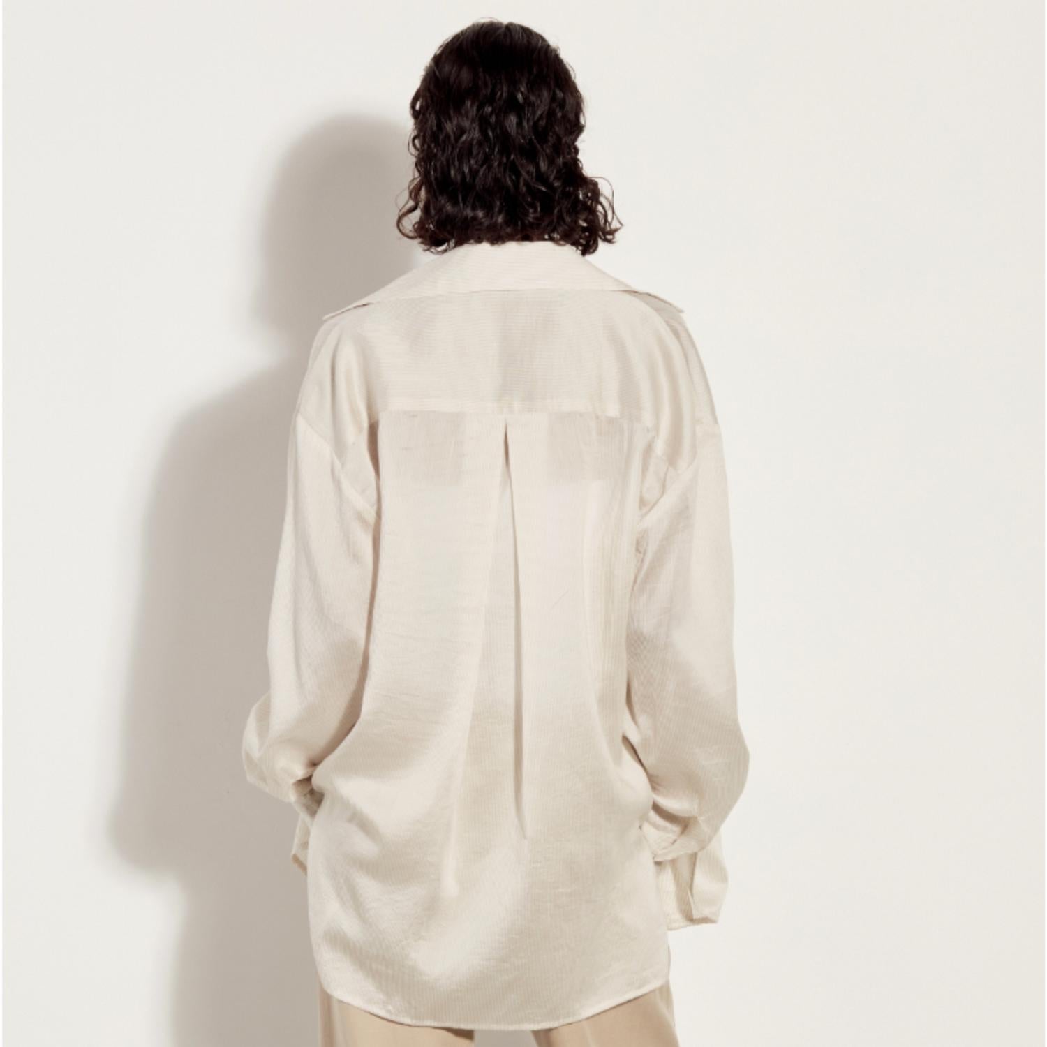 A versatile blouse that works from desk to dinner! Introducing the Silk Blend Striped Shirt by Enza Costa, the perfect piece for your summer wardrobe in a chic khaki stripe. This blouse features long sleeves and is crafted from a luxurious blend of 68% Lyocell and 14% Silk. Closure: Button closure. Care: Dry clean; tumble dry.