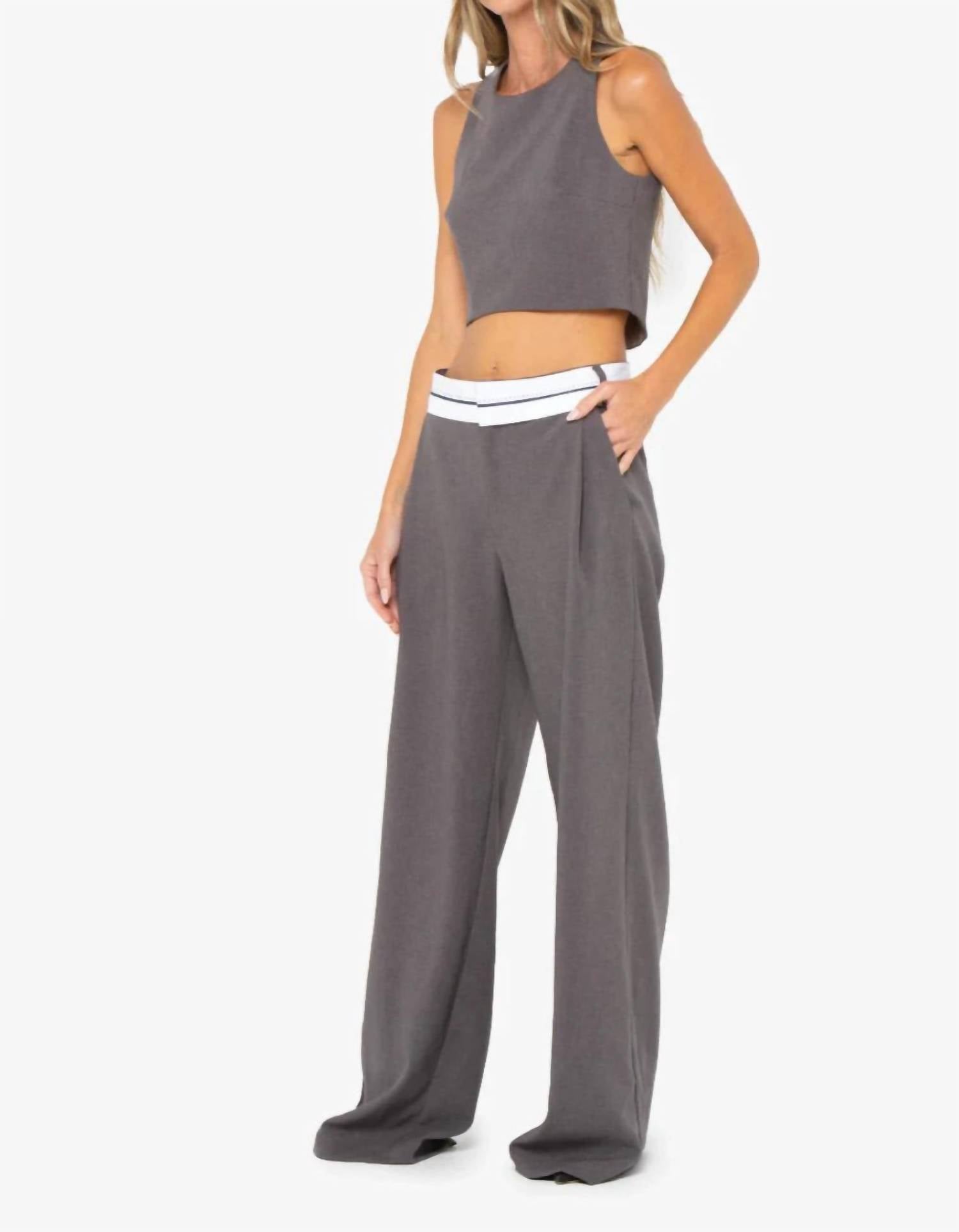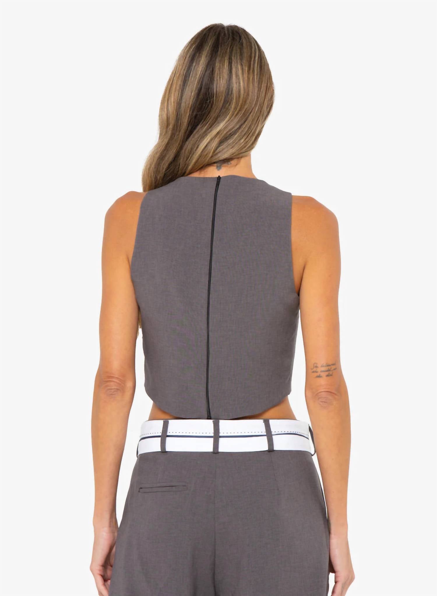 Introducing the JBQ Isadora Top in a chic slate hue, designed for the modern woman. This sleeveless, cropped silhouette features a back zipper closure and is crafted from lightweight linen-like 100% polyester. Made in the USA of imported materials, it offers a flattering true-to-size fit. Care instructions recommend washing cold to maintain its stylish appeal.