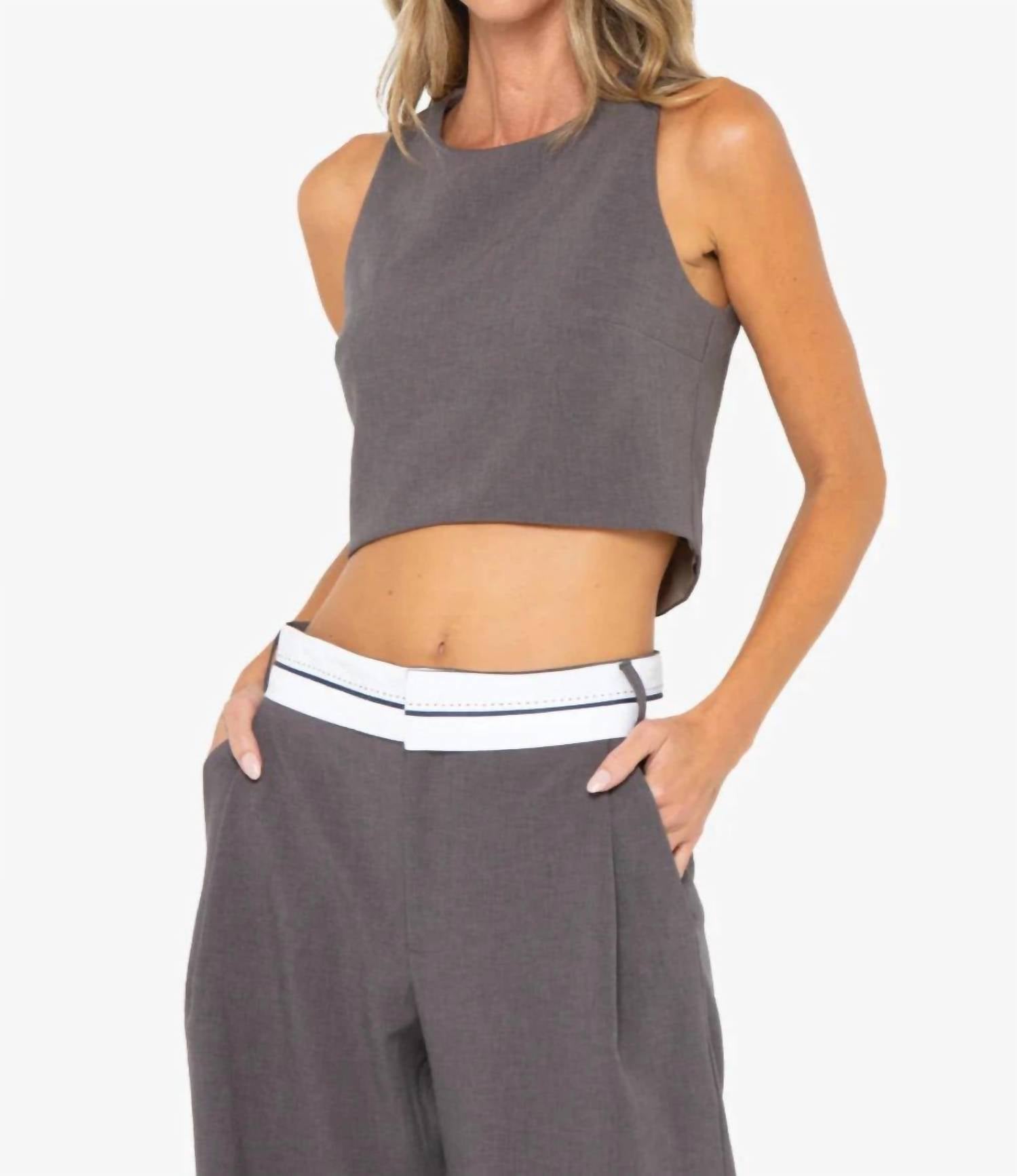 Show a little skin in this cute and casual crop top. Introducing the JBQ Isadora Top in a chic slate hue, designed for the modern woman. This sleeveless, cropped silhouette features a back zipper closure and is crafted from lightweight linen-like 100% polyester. Made in the USA of imported materials, it offers a flattering true-to-size fit. Care instructions recommend washing cold to maintain its stylish appeal.