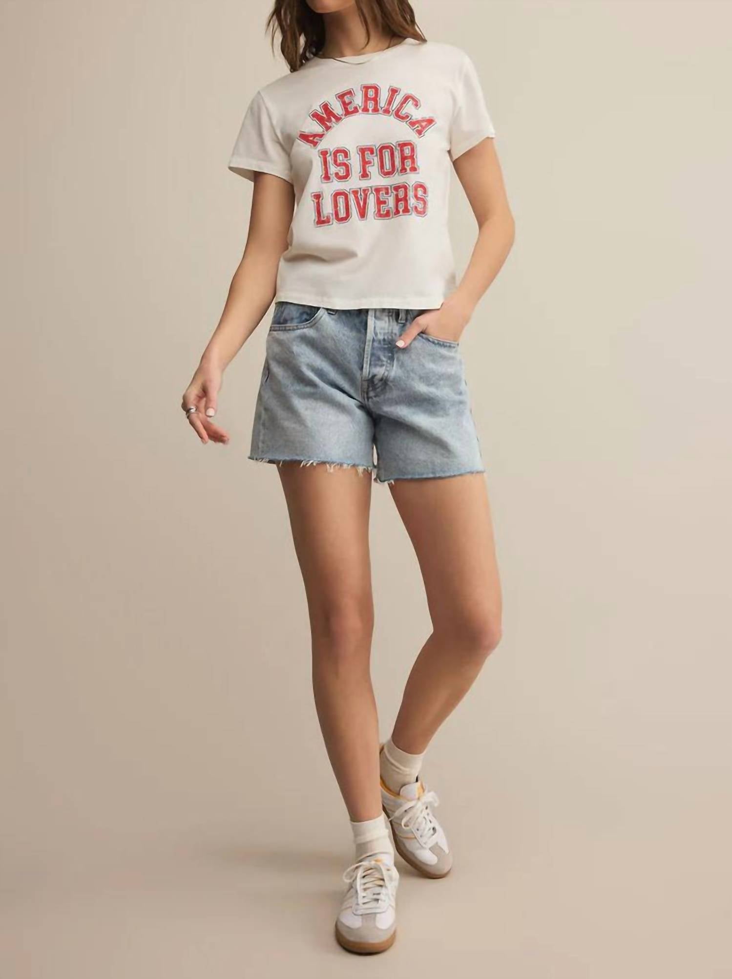The short sleeve tee you'll want in every color. Introducing the Lovers Tourist Tee by Z Supply, a streetwear-inspired piece that exudes vintage varsity vibes. This white crew neck tee features short sleeves and a "America is for Lovers" collegiate graphic print, crafted from 100% cotton jersey for a lightweight, relaxed fit. Closure: Pull on. Care: Machine wash cold and tumble dry low; wash before wear.