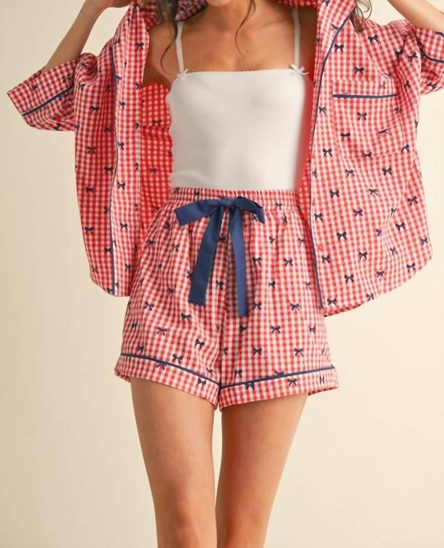 The perfect piece to lounge in, sleep in, and cook breakfast in. Elevate your loungewear collection with You Pajamas by AnnieWear, crafted in chic red gingham. Designed with a three-quarter sleeve length and a stylish collar, these pajamas are perfect for a touch of sophistication at home. Made from seersucker fabric, they provide a breathable and comfortable fit all day long. Ideal for women seeking both fashion and comfort in their leisurewear.