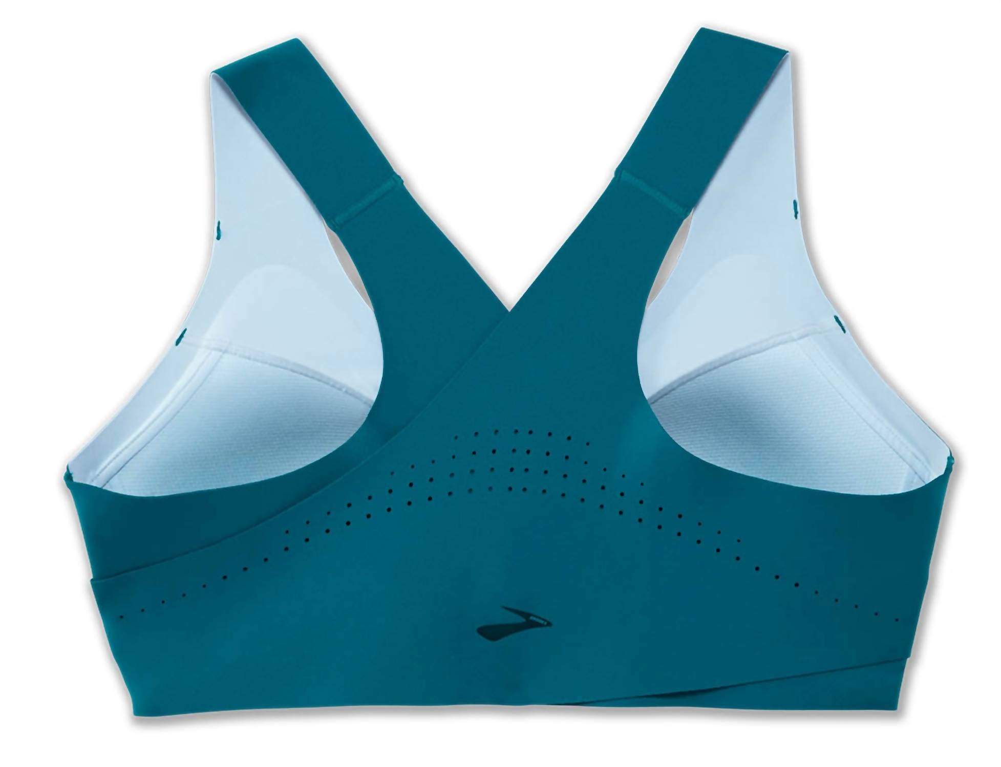 So comfortable you can sleep in it, lounge in it, or work out in it. Unleash your workouts with the Dare Crossback Sports Bra by Brooks, tailored for peak performance and style in a vibrant sea hue. Designed with a pullover crossback style, this bra features a high-impact DriLayer HorsePower Spacer body, composed of 63% nylon and 37% spandex, complemented by 100% polyester cups for optimal support. Equipped with molded encapsulation support and an integrated bottom band, it ensures unparalleled comfort and uplift. Strategically placed perforations enhance ventilation, making it perfect for high-energy fitness sessions.
