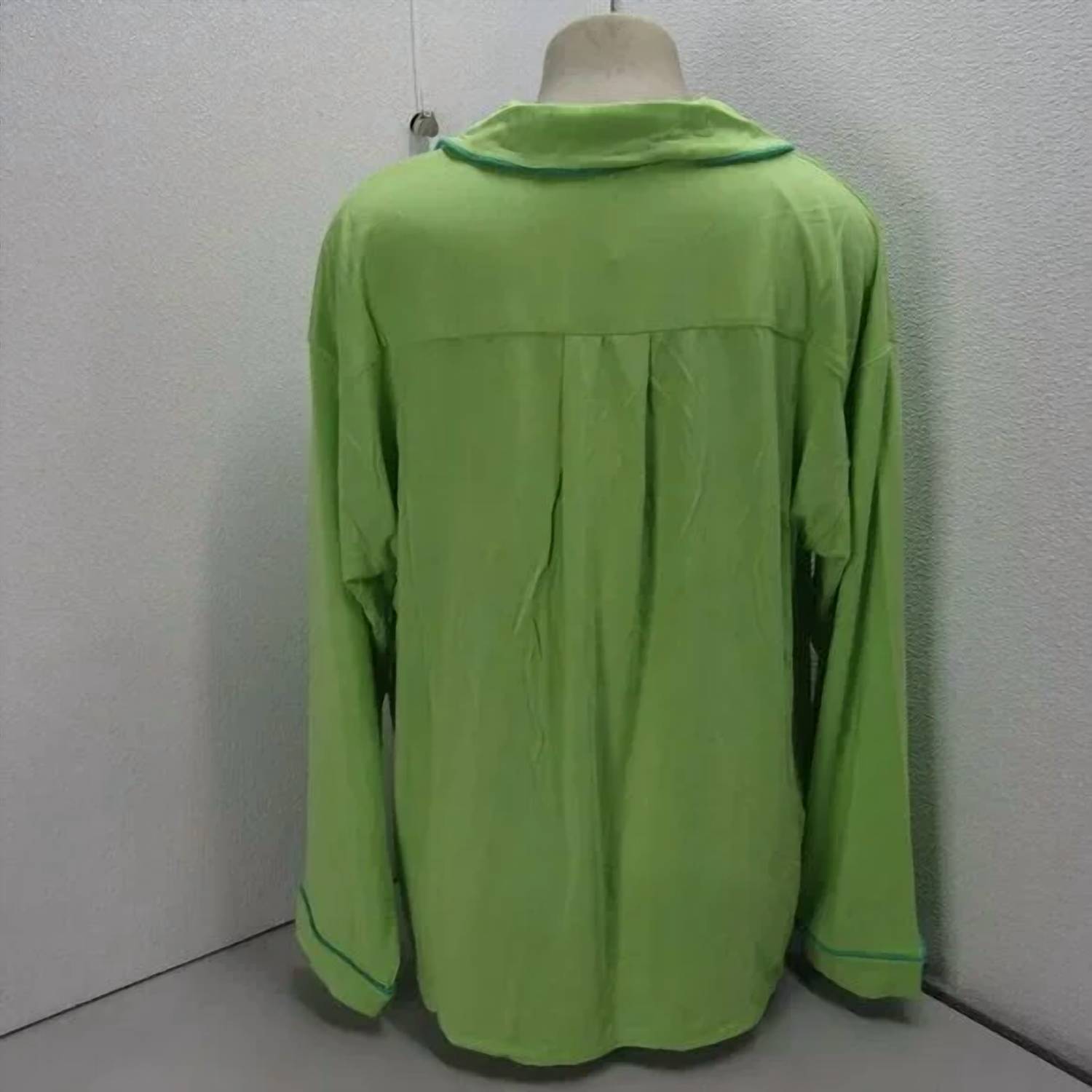 Experience the ultimate in comfort with the Women's The Briar Piped Pajama Long Sleeve Shirt by Anthropologie, a chic addition to your sleepwear collection. This pajama top boasts a classic notch collar with delicate contrast piping and long sleeves featuring piped cuffs for a timeless, minimalist look. Made from 100% soft and breathable cotton, it's ideal for year-round wear. Closure: Button-front. Care: Machine wash cold on a gentle cycle and tumble dry low.