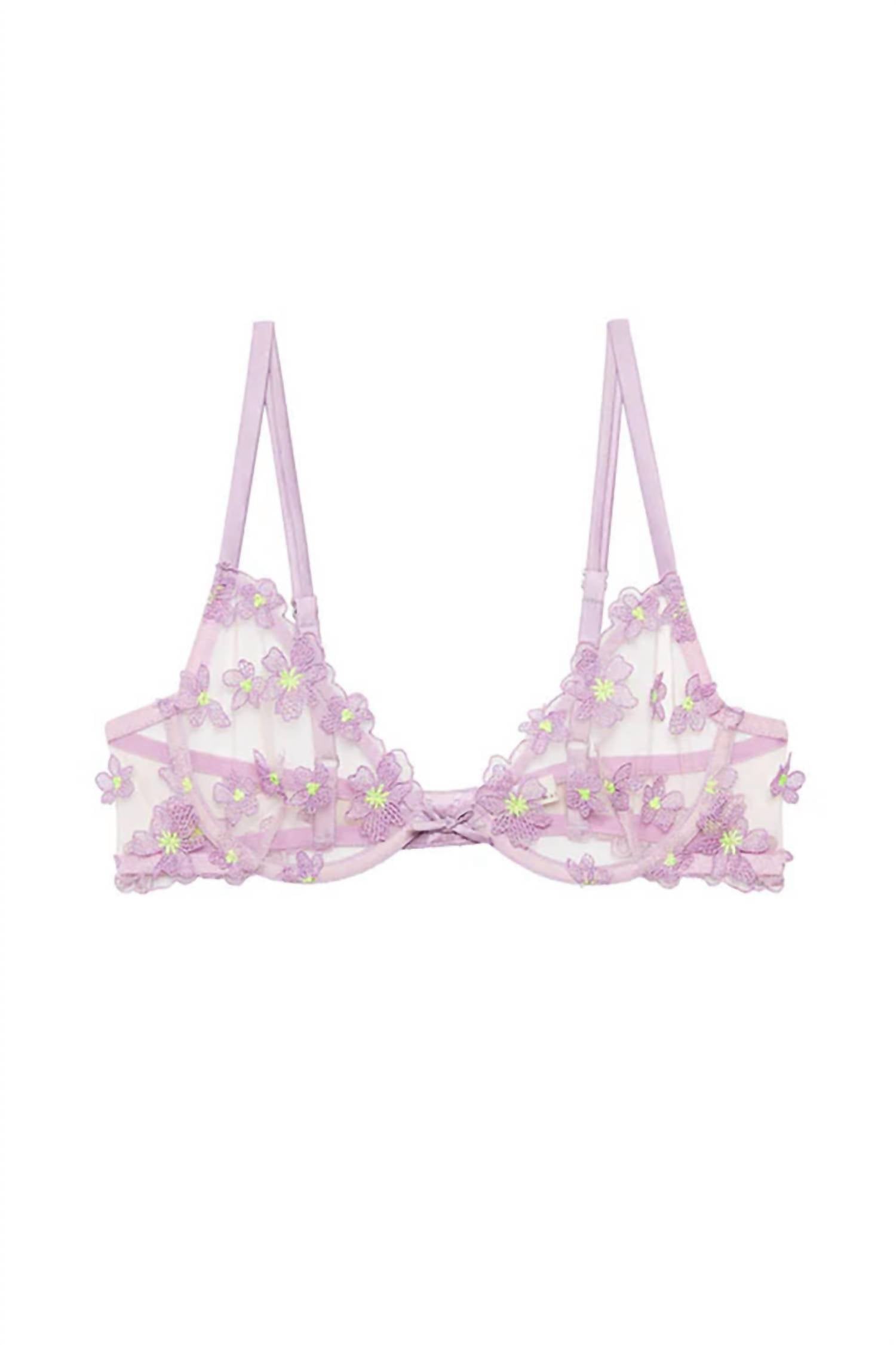 The most comfortable and stylish bra that you'll reach for daily. Introducing the Petal Embroidery Demi Bra by Fleur Du Mal, a captivating floral delight in Spring Lavender. This women's bra is crafted from polyester and features exquisite 3D floral embroidery on sheer tulle with underwire for optimal support. Adjustable silk-covered straps ensure a customized fit, adding to its delicate allure. Care: Hand wash and line dry to maintain its intricate design.