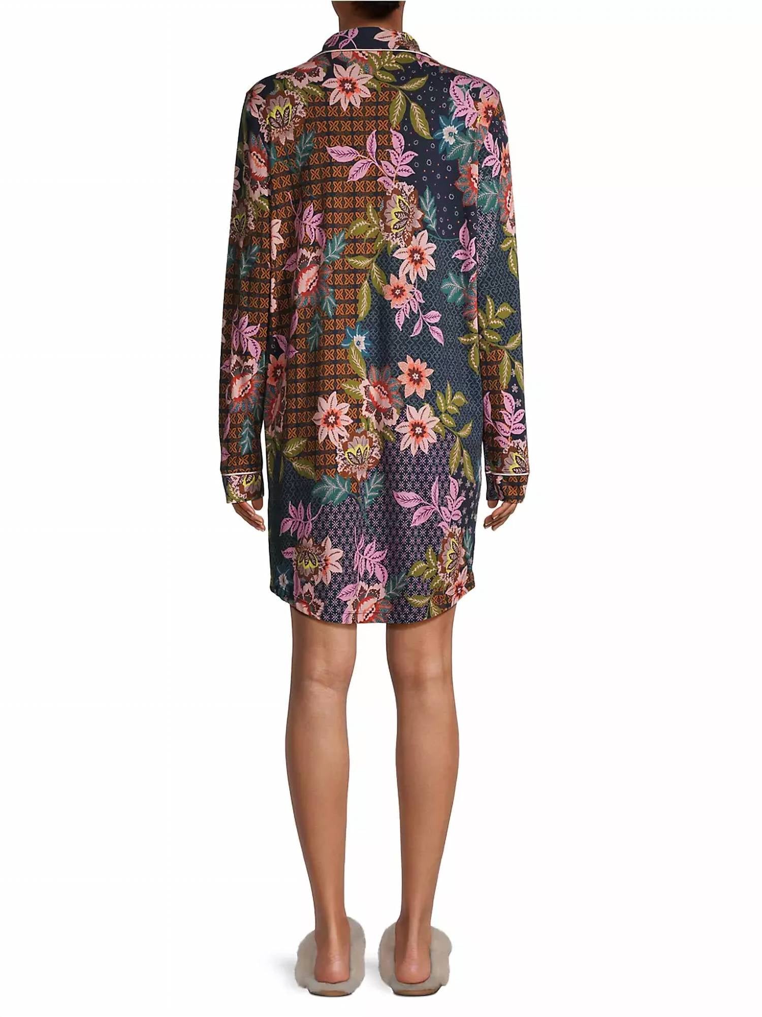 This sleep shirt from Johnny Was is crafted of a soft cotton-modal blend and designed for a relaxed fit. Long sleeves and a bohemian floral print. Notch collar. Long sleeves. Chest patch pocket. Button-front closure. About 46" from shoulder to hem. Model is 5'10" wearing a US size Small. Machine wash cold. 50% Cotton, 50% Modal.
