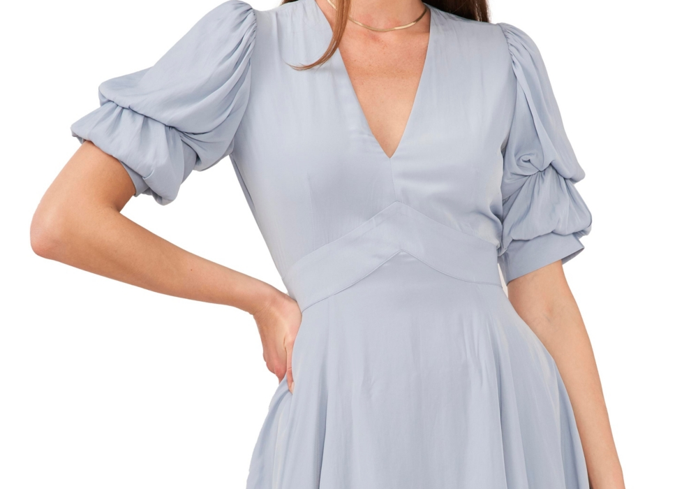 1.state Women's Short Puff Sleeve Tiered Short Dress Blue Size M