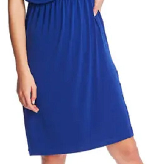 V-neck; A-line silhouette|Pullover style|Cap sleeves|Cutout at back; elasticized waistband|Polyester|Machine washable