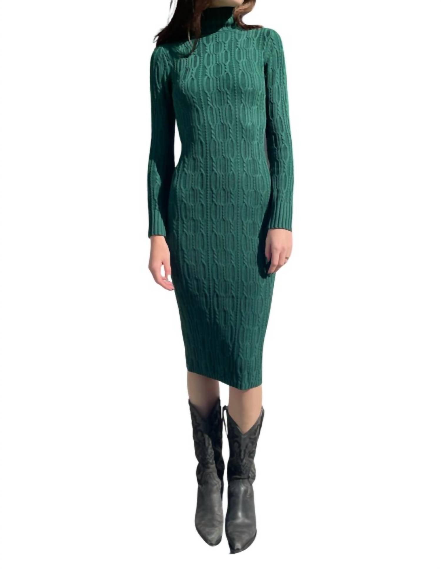 Elevate your wardrobe with the Emerald Ribbed Turtleneck Midi Dress by 525 America, a striking choice for any dinner party or Thanksgiving gathering. This bodycon dress boasts a long sleeve design with a textured pattern and a sophisticated turtleneck, seamlessly combining comfort and style. Crafted for the fall season, it features an easy pull-on closure. Care for this garment with a gentle hand wash.