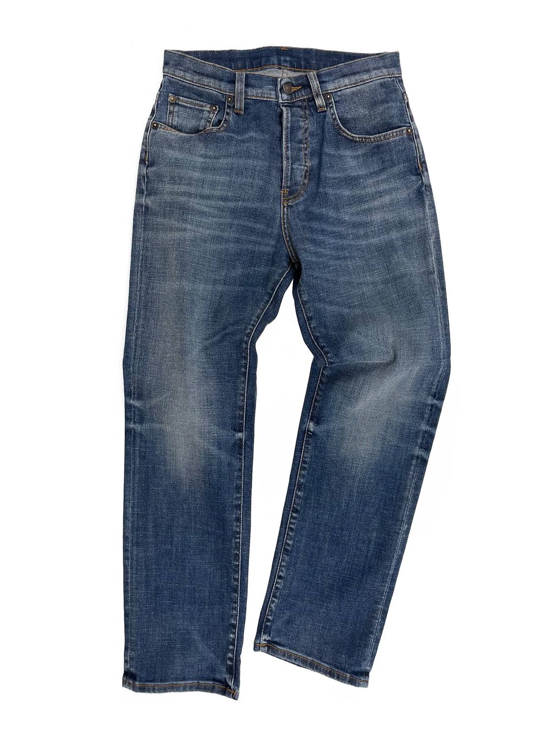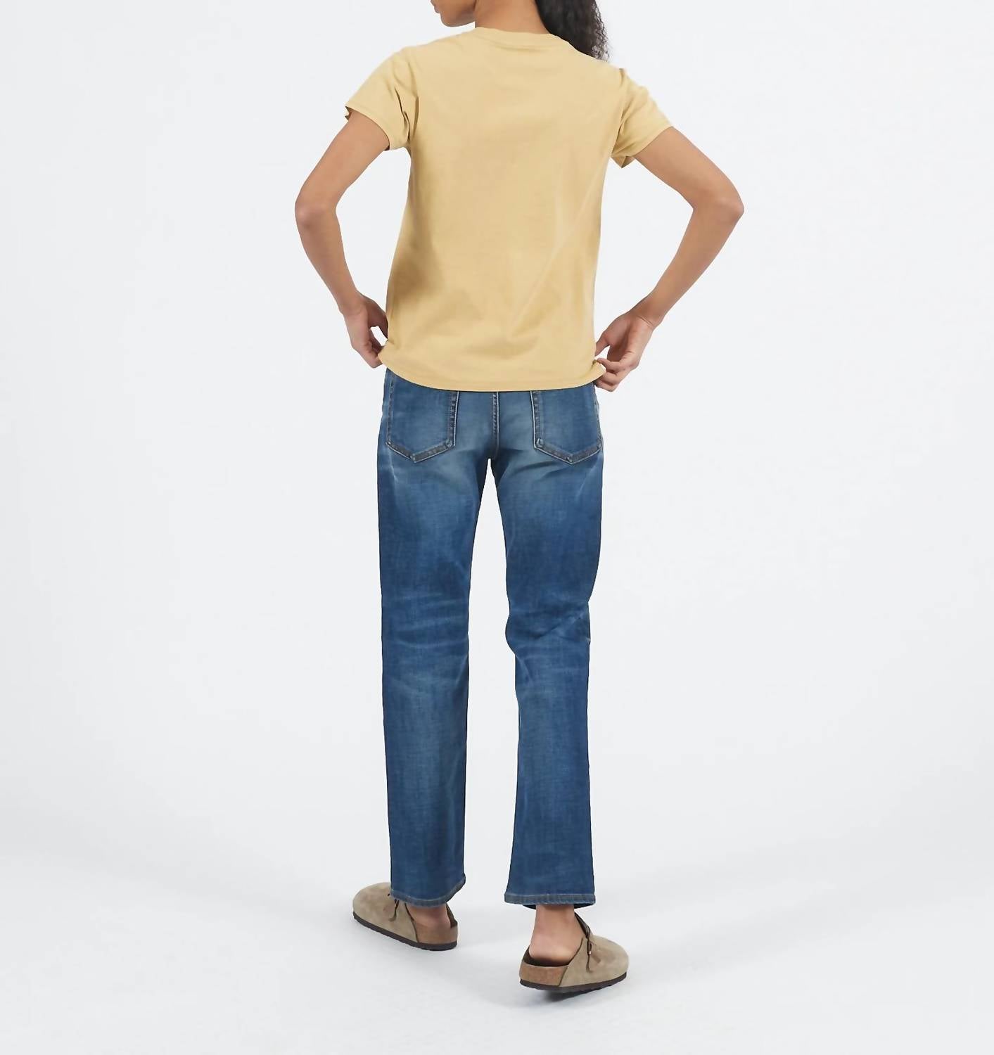 These must-have jeans are fit to perfection. Introducing the Vintage Straight Leg Jean by 6397 in a medium used blue denim for a timeless look. Crafted with 98% cotton and 2% elastane, it offers a classic vintage fit with a high rise and 5-pocket detailing. Made in Italy, this straight leg style sits squarely at the hips and features a zip closure. Care for it easily with machine wash instructions. Model is 5'7" and wears a size 26.
