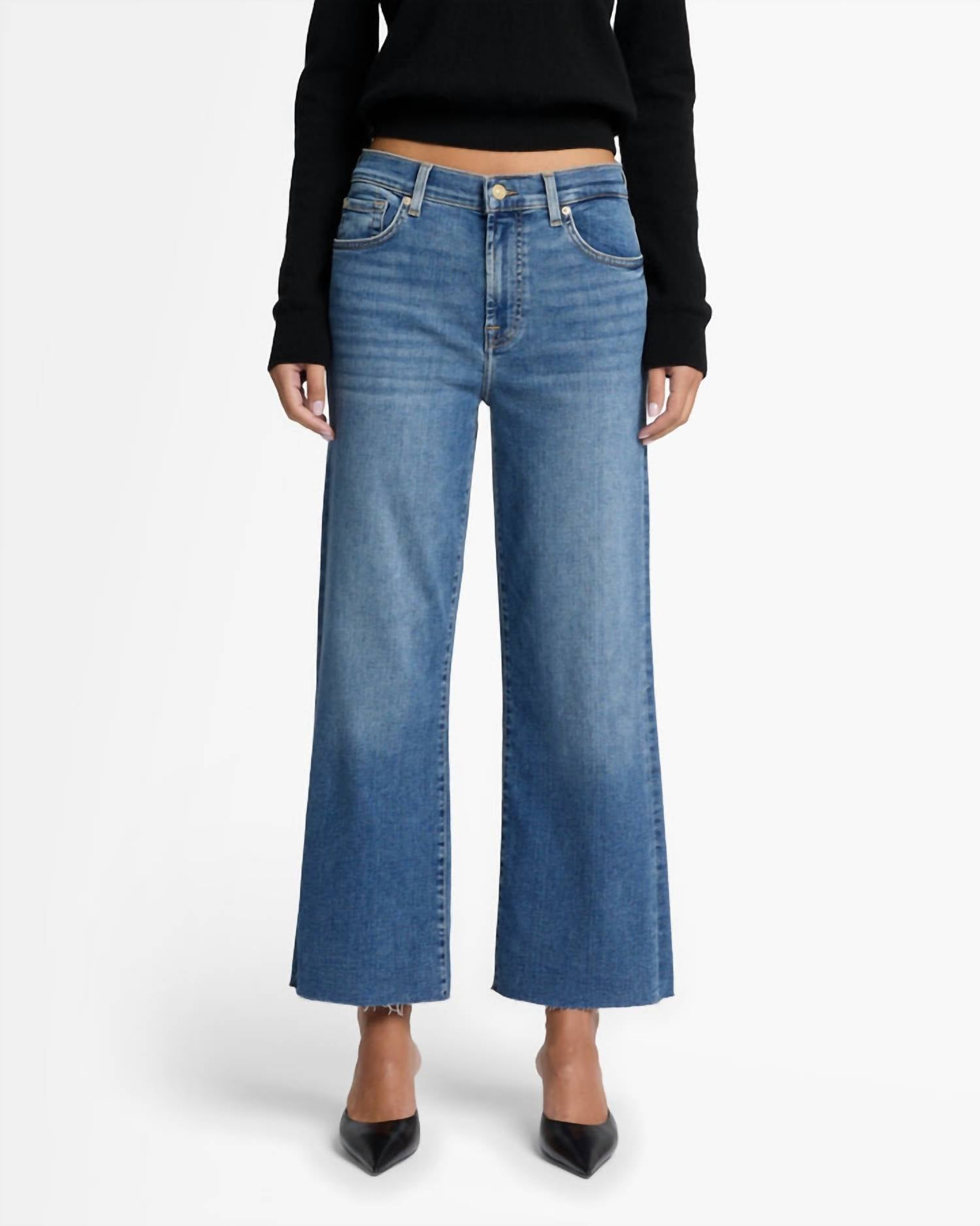 We especially love this cropped jean with a cute pair of slides or sandals. Introducing the Cropped Alexa Jeans by 7 For All Mankind, a stylish addition to your wardrobe in the Felicity color. These jeans boast a dark wash with a flattering slim fit and mid-rise waist, complete with a straight leg and a textured pattern. Crafted from a comfortable cotton blend, they feature a button closure and are designed with functional pockets. Care for these jeans by machine washing them cold inside out with like colors and laying them flat to dry.