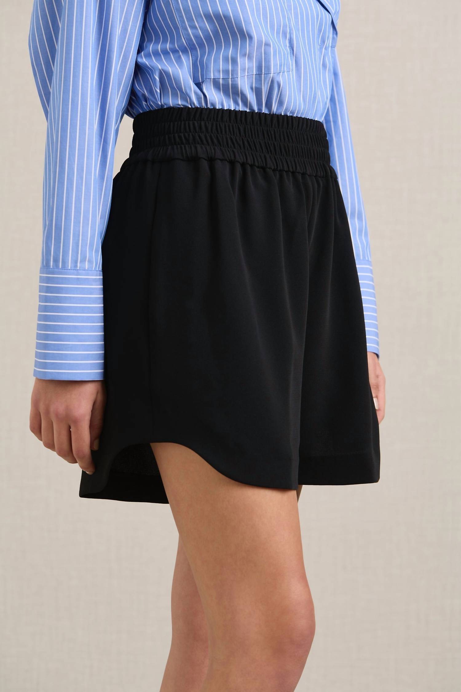 High-waist is here to stay and we especially love this style short. Introducing the Morris High Waist Short by A.Emery, designed in a sleek solid black for a modern streetwear look. These shorts are crafted from a blend of 69% triacetate and 31% polyester, ensuring a smooth and refined finish. Originating from high-quality materials, they feature a convenient pull-on closure and practical pockets. Care instructions are simple: hand wash and line dry to maintain their shape and feel.