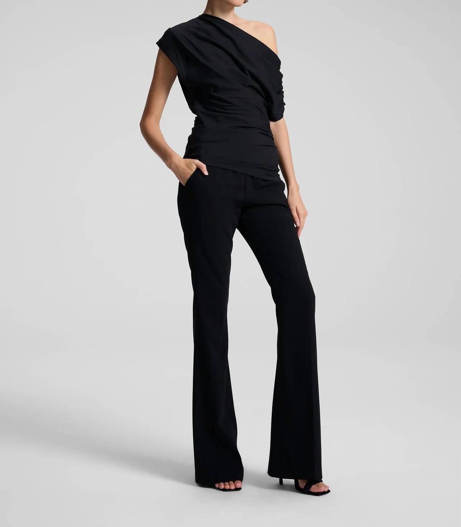 Elevate your wardrobe with the Alice One Shoulder Top by A.L.C., a chic addition to any monochromatic look. This top features a short sleeve and an off-the-shoulder design, exuding a modern and structured appeal with its ruched side and one-shoulder silhouette. Crafted from a clean finish jersey fabric in solid black, it perfectly combines style and elegance. Ideal for spring vacations or a Thanksgiving gathering, this blouse is a must-have for the trend-conscious woman.