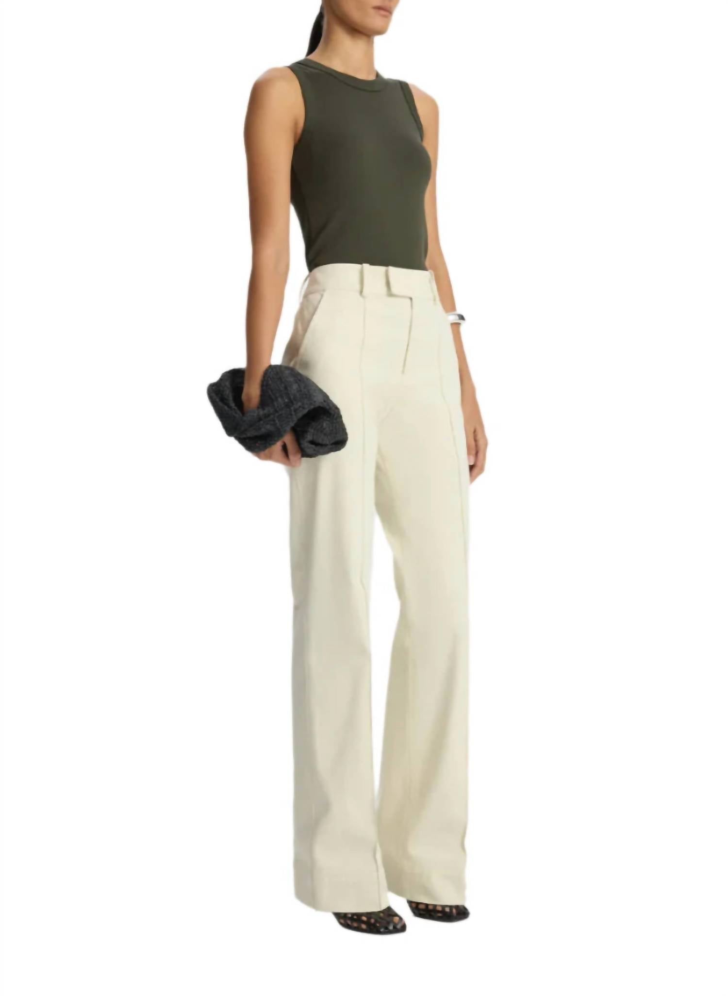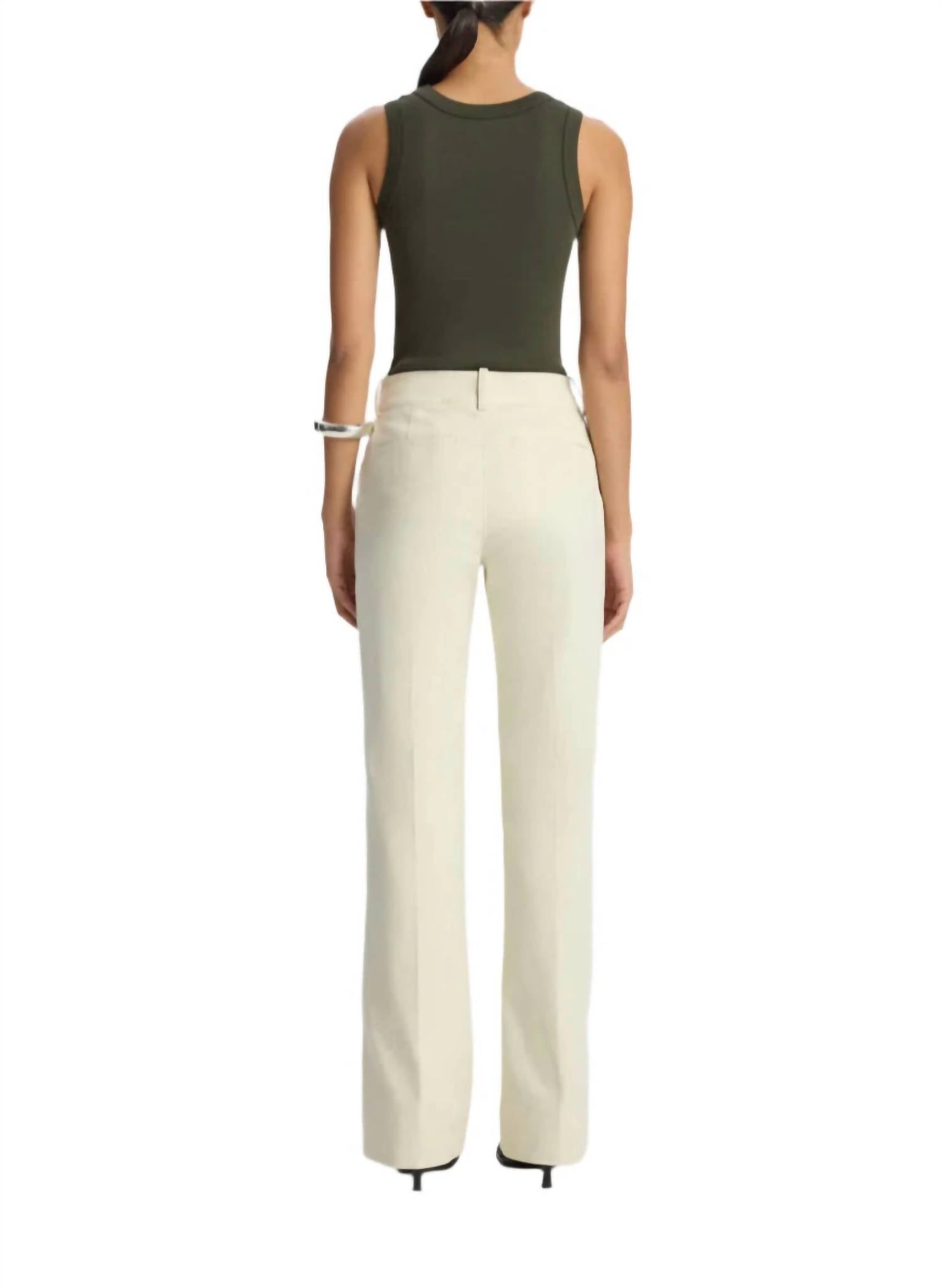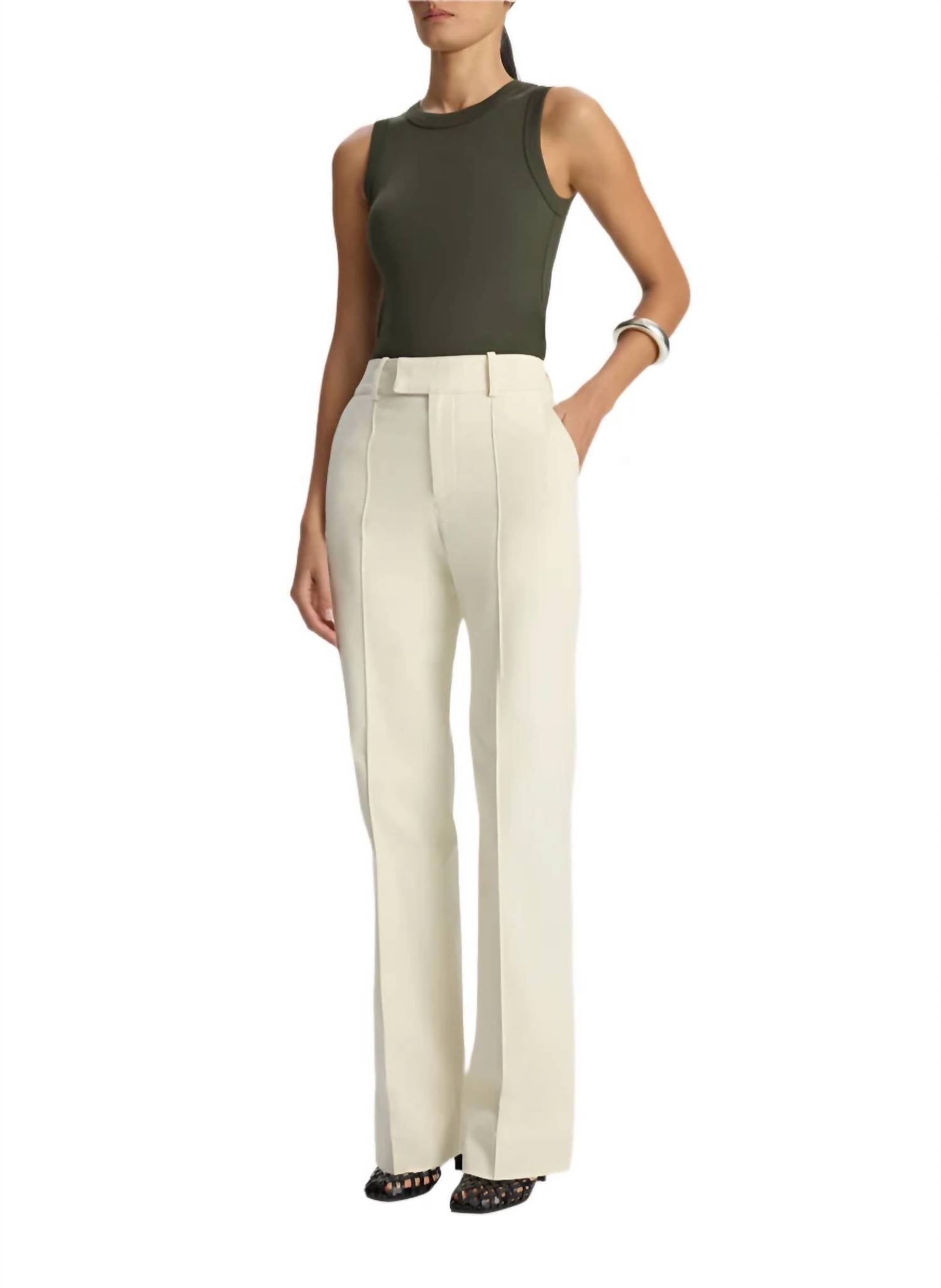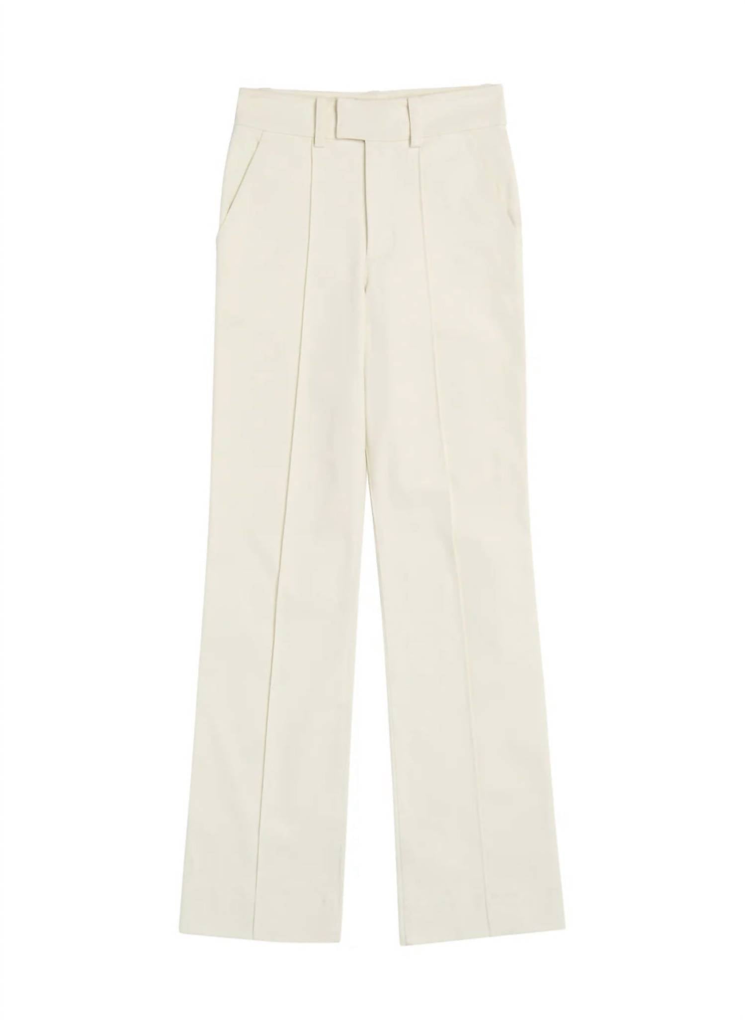 Introducing the A.L.C. Simon Pant in Bone, crafted from refined compact stretch cotton fabric for a blend of comfort and style. With a high-rise silhouette and leg-lengthening pintuck front seams, it ensures a flattering fit complemented by functional slash pockets. 98% Cotton 2% ElastaneDry CleanRise:12.25"Inseam: 33.625"
