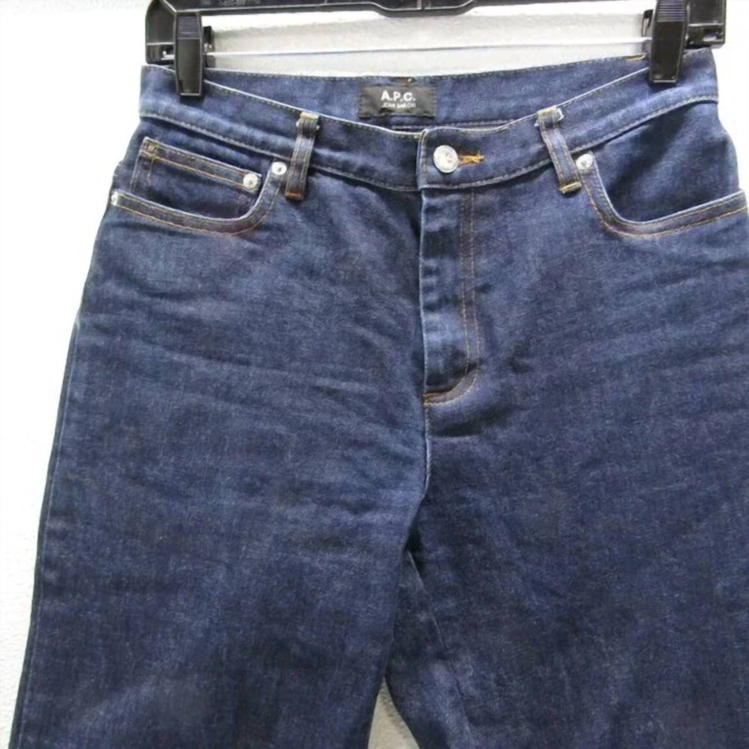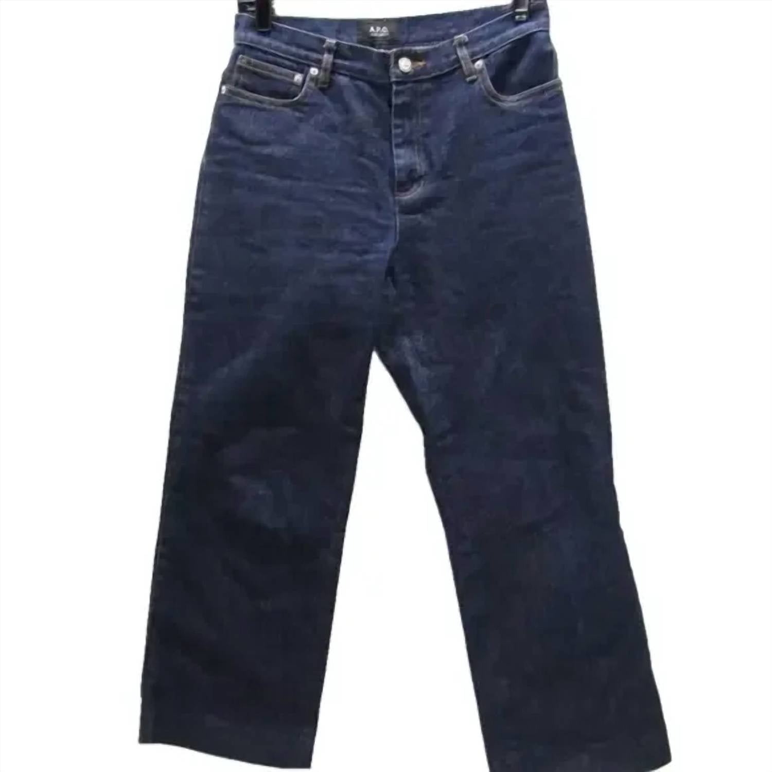 Elevate your wardrobe with the A.P.C. Women's Sailor Straight Leg Jeans, crafted from 98% cotton and 2% polyurethane for a comfortable stretch. With a high-rise waist, these jeans feature a sailor-inspired design and stylish front button closures, paired with a zip closure. The indigo dark blue denim boasts a timeless appeal, perfect for both evening events and casual outings. Inseam: 25.5 inches. Care: Machine washable.