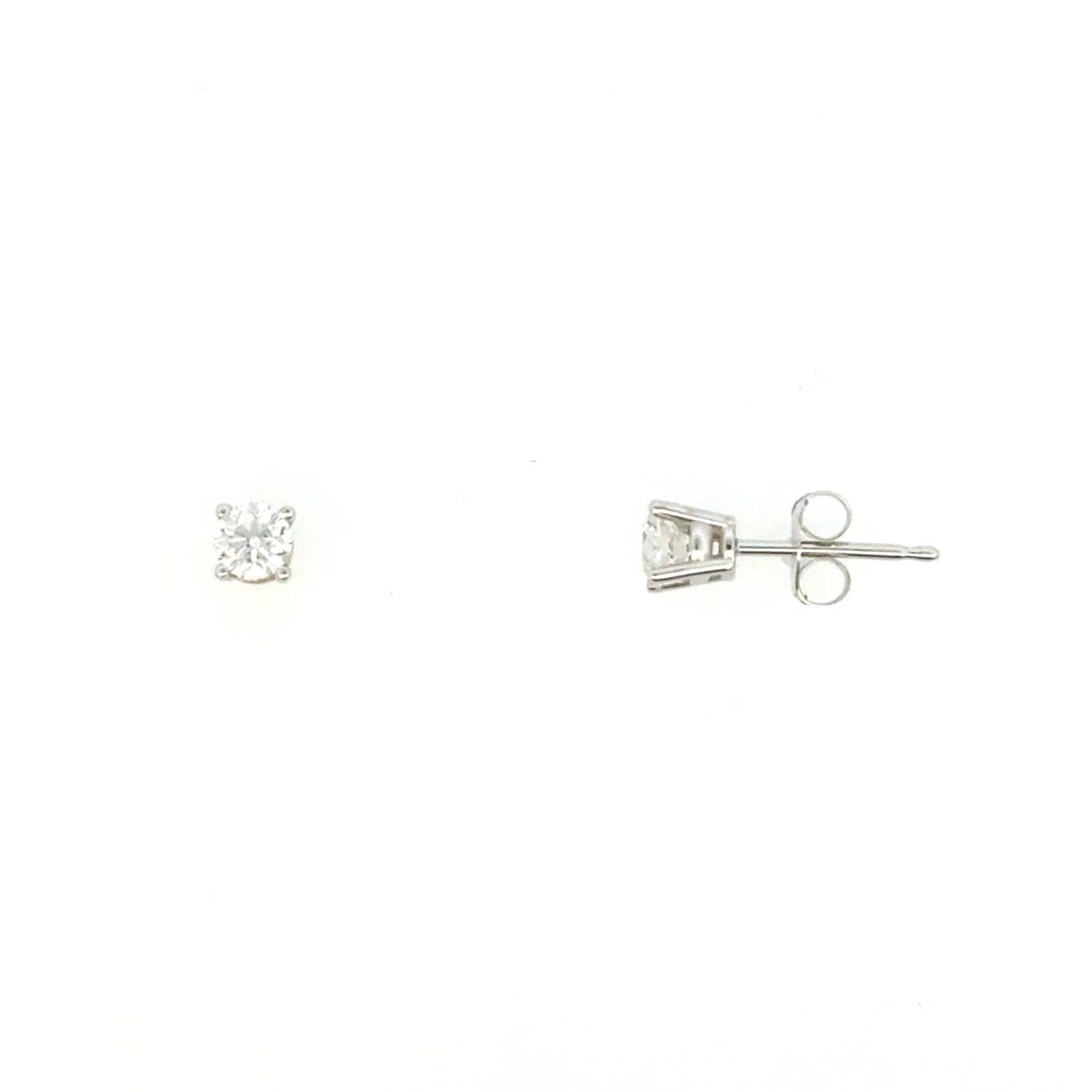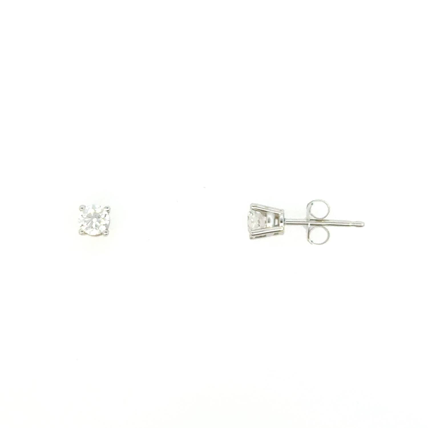eye-catching earrings for every occasion. Classic diamond stud earrings featuring 0.40 total carats of natural round brilliant cut diamonds. Each diamond is securely held in a traditional four-prong setting that maximizes light reflection and brilliance. Crafted in 14k white gold (1.00 grams) with reliable post and butterfly back closures for comfortable, secure wear. These timeless studs offer elegant sparkle perfect for everyday wear or special occasions, making them an essential addition to any jewelry collection. Key Features: 0.40 total carat weight natural diamonds. Round brilliant cut diamonds. 14k white gold construction (1.00 grams). Four-prong setting. Post and butterfly back closures. Perfect for everyday wear or special occasions.
