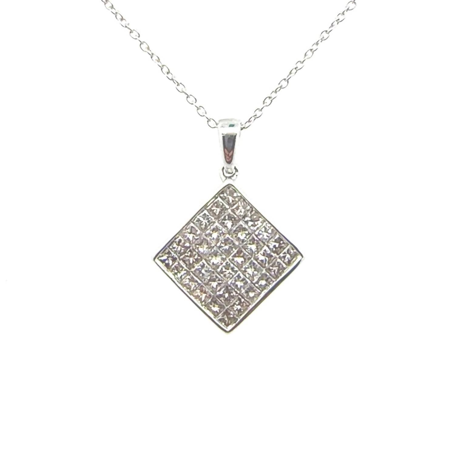 Discover the Stan Collection 1.26 Ctw Natural Diamond Pendant by AAMIAA, a fine jewelry piece crafted in luxurious 14k white gold. This pendant showcases 36 natural princess shape diamonds, totaling 1.26 carats, elegantly set for a timeless appeal. Made for those who cherish elegance and refinement in their accessory collection.