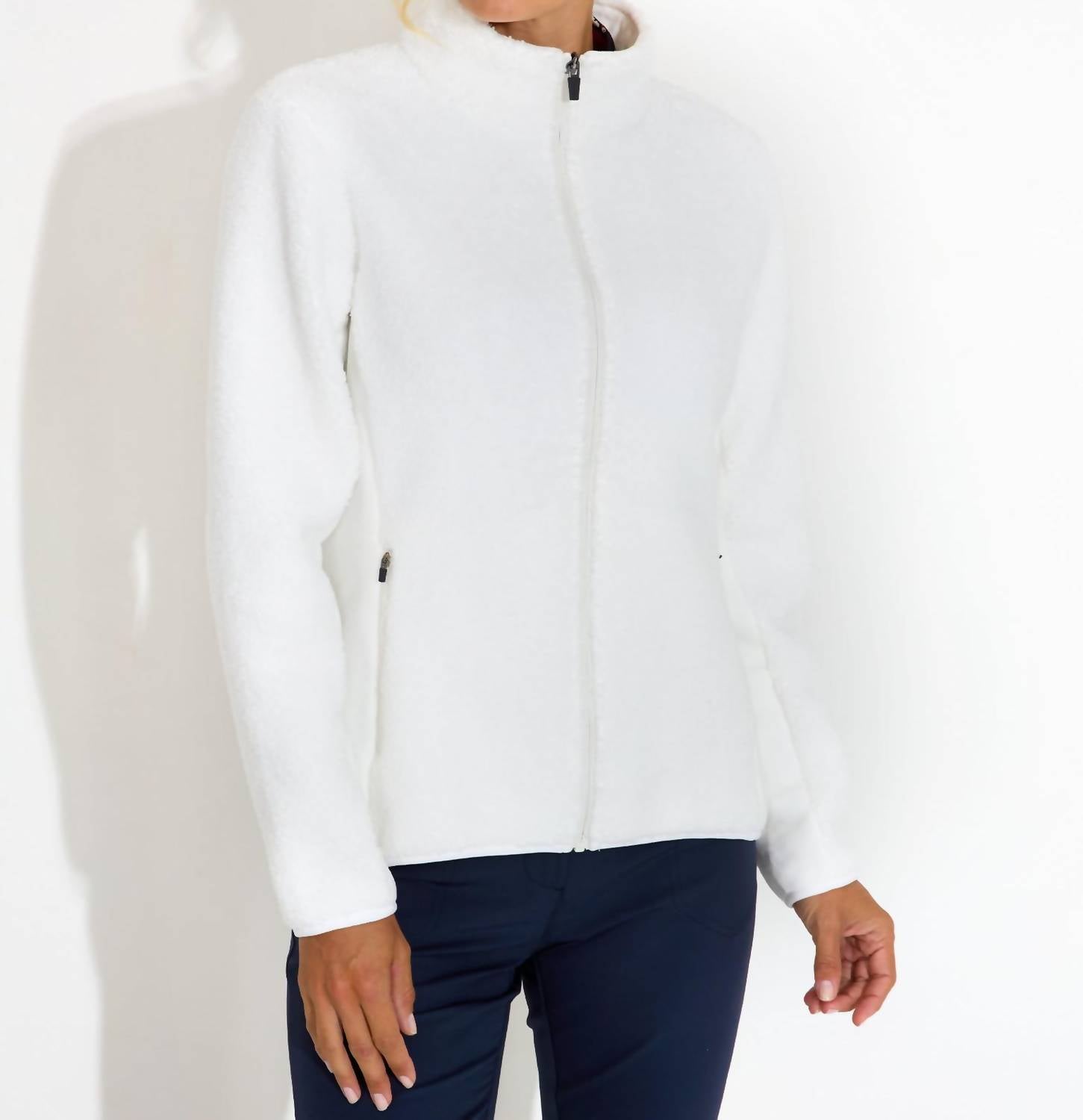 This utility jacket is the perfect combination of cool and feminine. Discover the Highlands Midlayer Jacket from Abacus Sportswear US, an athleisure essential in a solid clam tone. This utility jacket, with long sleeves and a mockneck, features a zip closure and is crafted from a soft polyester teddy fabric for warmth and comfort. Reinforcements at the shoulders and collar enhance durability, while two practical front pockets add function and style. Care is a breeze with machine wash and tumble dry instructions.