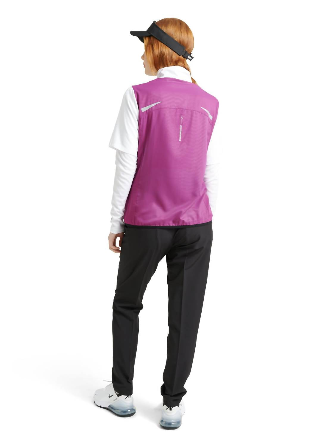 This classic, short sleeve tee will be your go-to staple this season and beyond. Introducing the Lanark Stretch Wind Shirt by Abacus Sportswear US, a lightweight 5 oz garment perfect for game day or athleisure wear. This women's violet wind shirt features long sleeves and is crafted from recycled polyester in a solid pattern, ensuring both style and sustainability. The design includes a practical full zip closure and a convenient zipped chest pocket, with an elastic edging at the body bottom for a comfortable fit. Care instructions are simple: machine wash and line dry. Model Sofia, standing 178 cm/5'8, is wearing a size M.