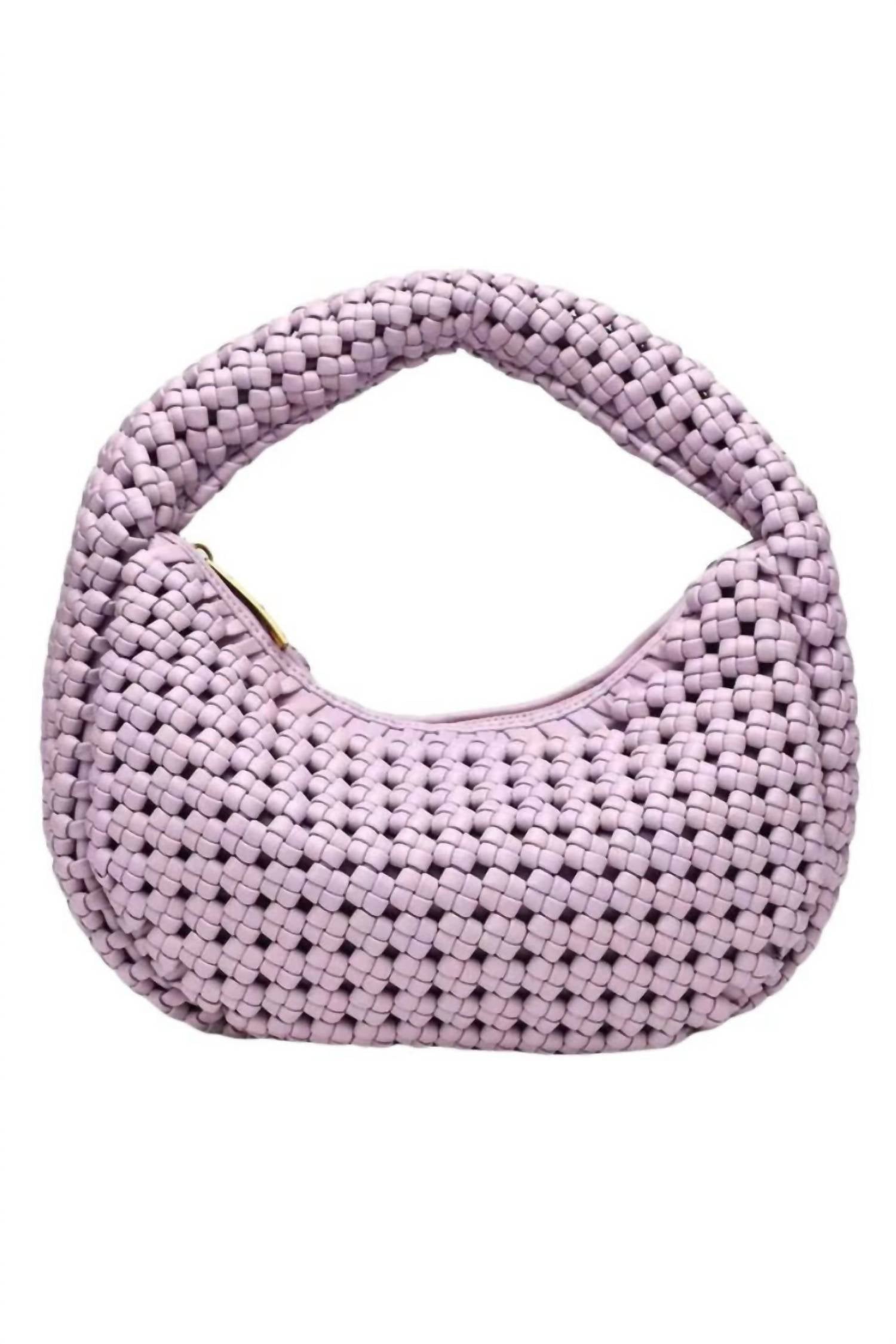 Introducing the Millie Woven Bag by ACCESSORY CONCIERGE in a stunning lilac hue, crafted from soft, woven faux leather for a luxurious yet durable finish. Measuring 12" in length, 4" in width, and 9" in height, this bag is both stylish and practical. The interior is fully lined and features a functional interior zipper pouch. It secures with a brass zipper closure, making it a versatile accessory for any outfit.