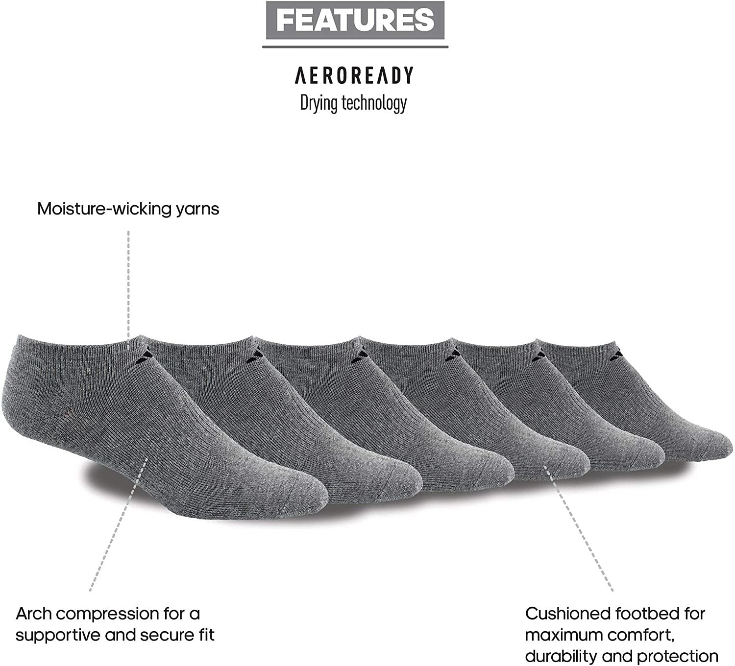 Adidas Men's Cushioned Athletic 6-Pack No Show Socks Gray Size 6-12