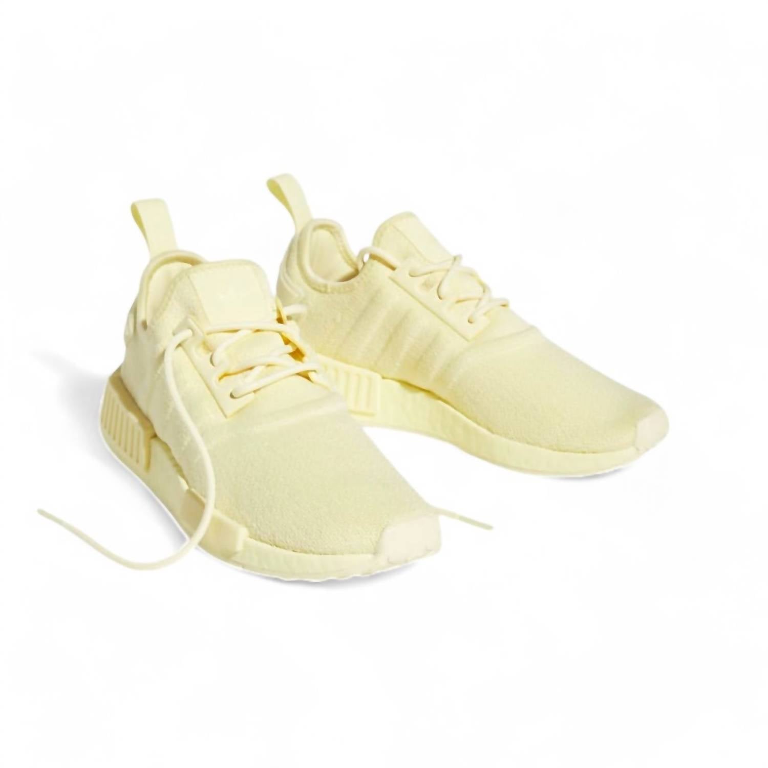 The Men's NMD R1 W Shoes are designed with a secure lace closure and a comfortable textile upper that ensures breathability. The interior features a soft textile lining for added comfort, while the BOOST midsole provides responsive cushioning for all-day wear. The durable rubber outsole enhances traction and stability on various surfaces.