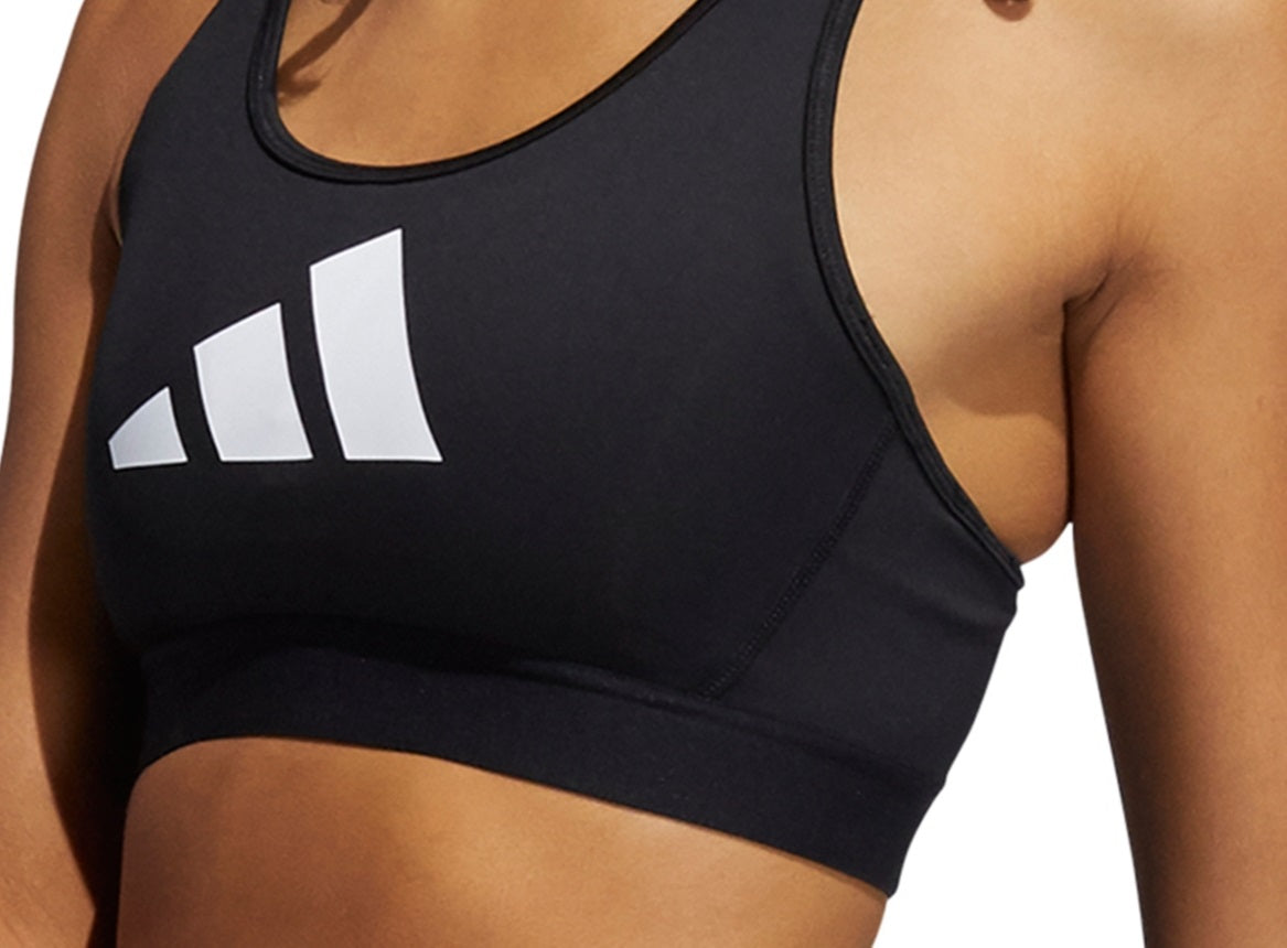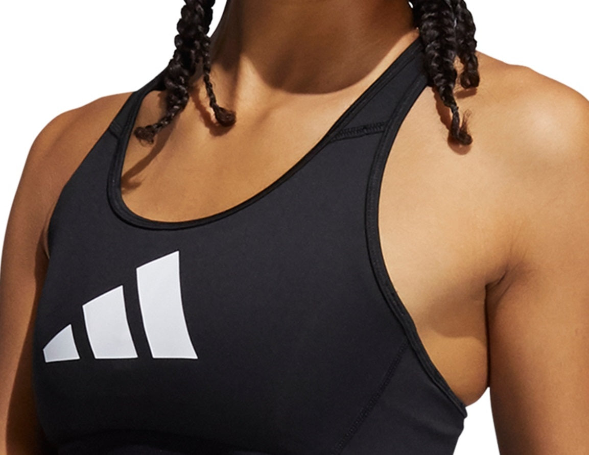 Push through your workout in comfort. This medium-support sports bra from adidas features power-mesh for support and moisture-managing AEROREADY to help you stay fresh and comfy.| Compression fit; racerback design | High neckline for extra coverage| INSPIRED for; Training | Mid-impact sports bra ideal for weight training and light aerobics | Moisture-managing AEROREADY; Power Mesh in the wings for high support and breathability; inner 2-piece power mesh layer to limit stretch and provide additional support| Logo graphic at front; front strap stabiliser